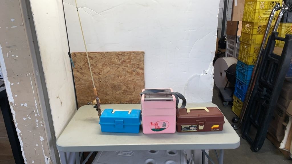 2 TACKLE BOXES WITH FISHING REELS AND FISHING ROD