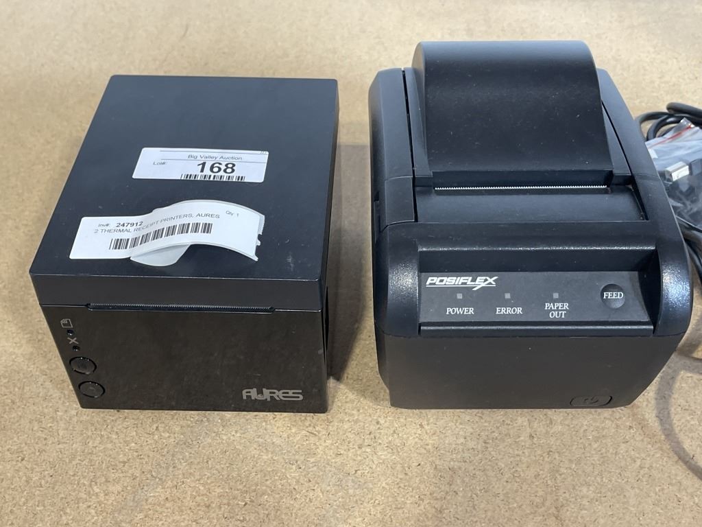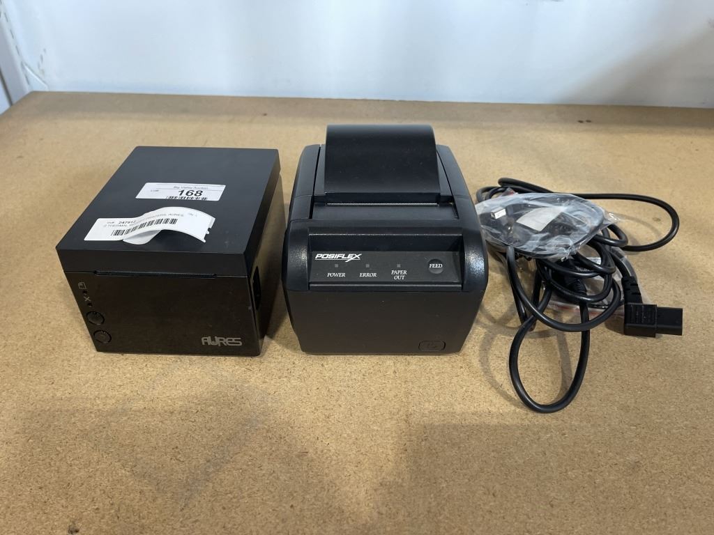 2 THERMAL RECEIPT PRINTERS, AURES MODEL ODP 333 AND POSIFLEX MODEL PP-8000B, NO POWER ADAPTERS