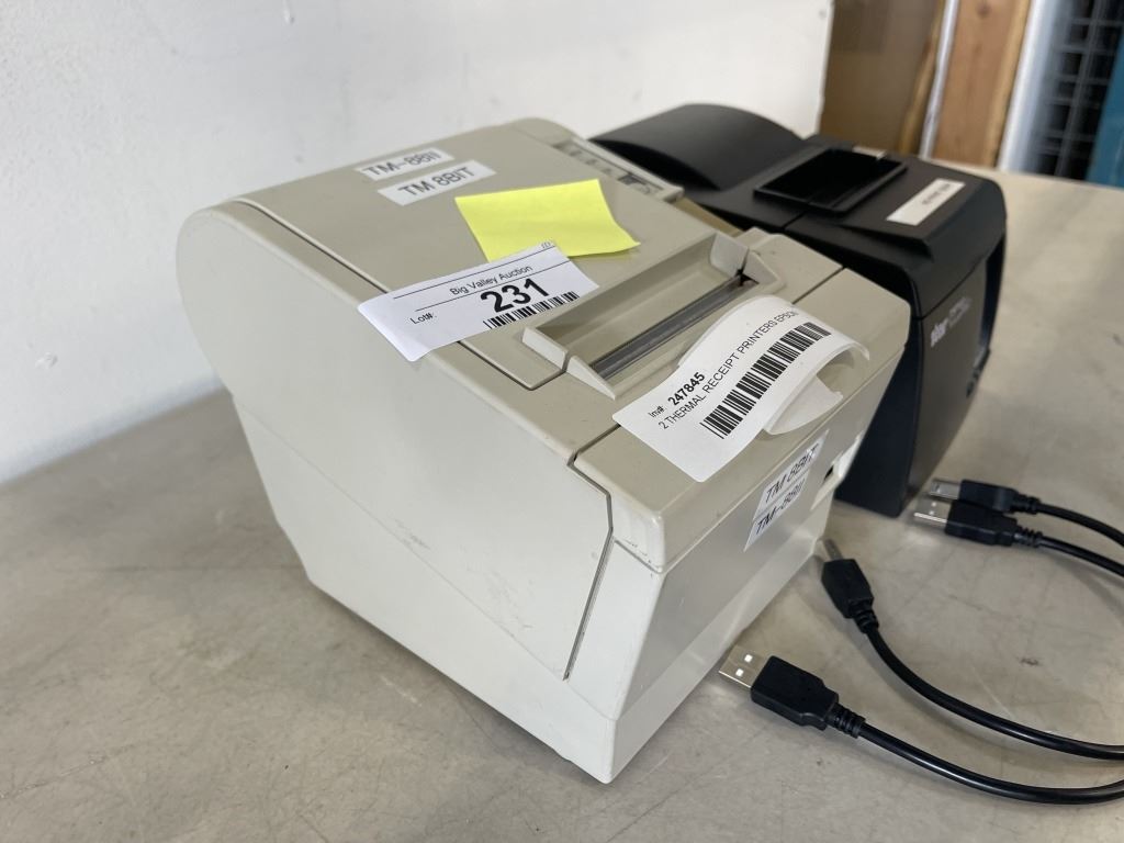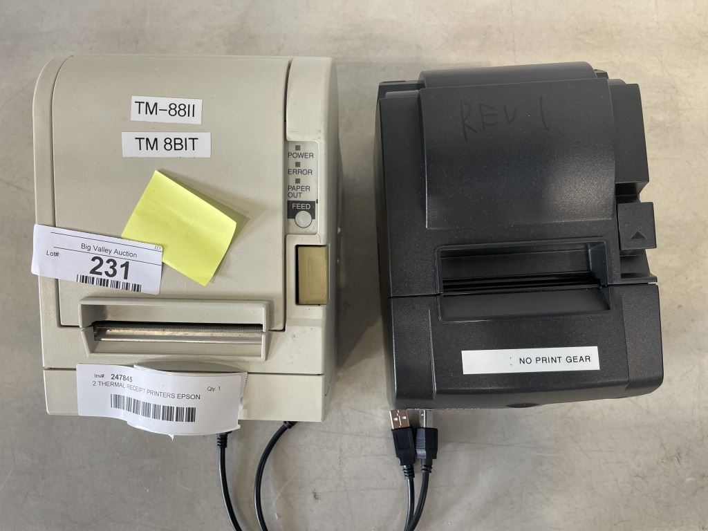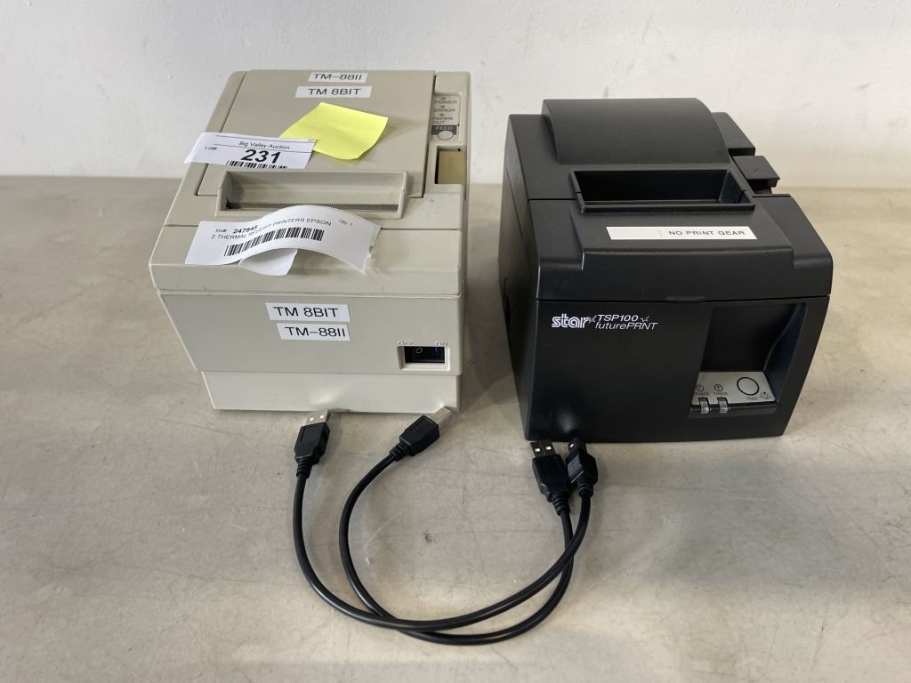 2 THERMAL RECEIPT PRINTERS EPSON TM-8811 AND STAR MODEL TSP100, NO POWER CABLES