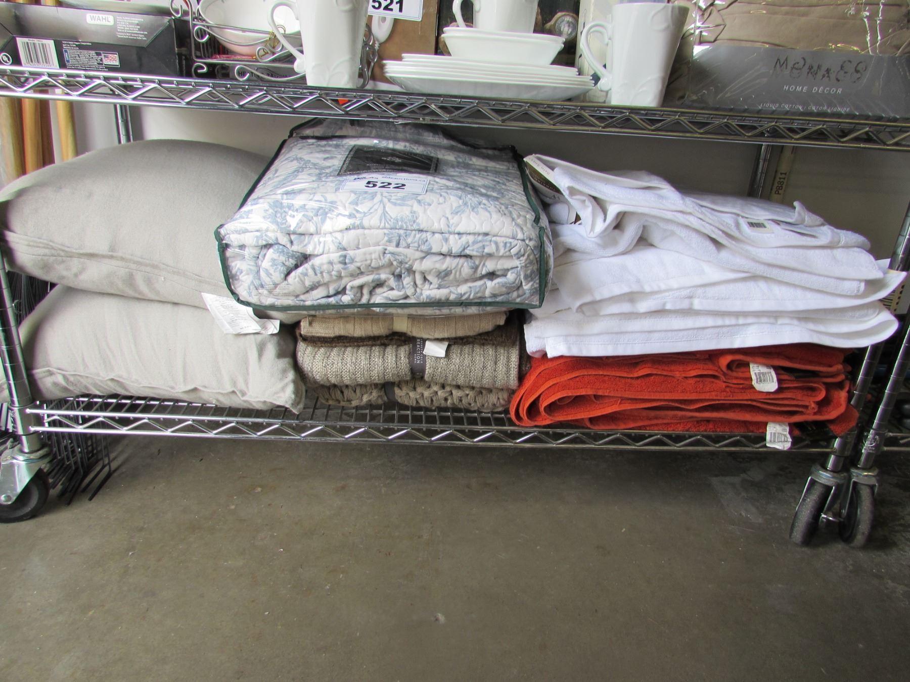 2 THROW PILLOWS, LAURA ASHLEY TWIN REVERSIBLE QUILT SET, KENNETH COLE THROW BLANKET, WAMSUTTA TOWELS