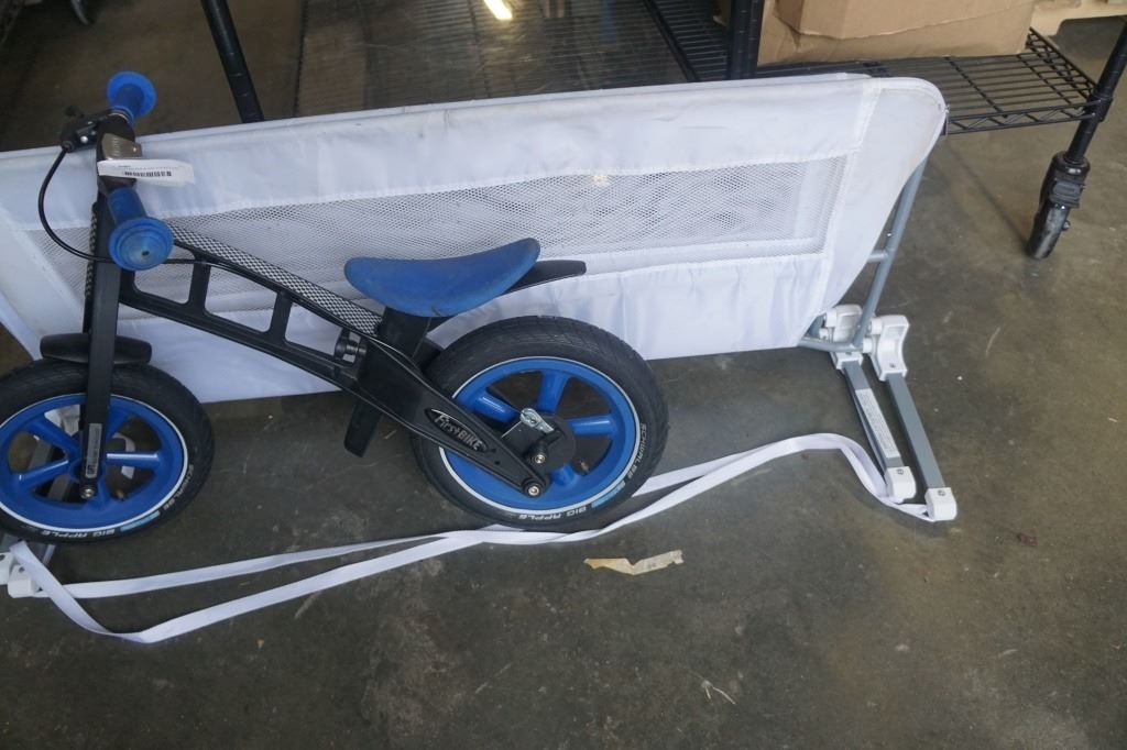2 TODDLER BEDRAILS AND STRIDER BIKE