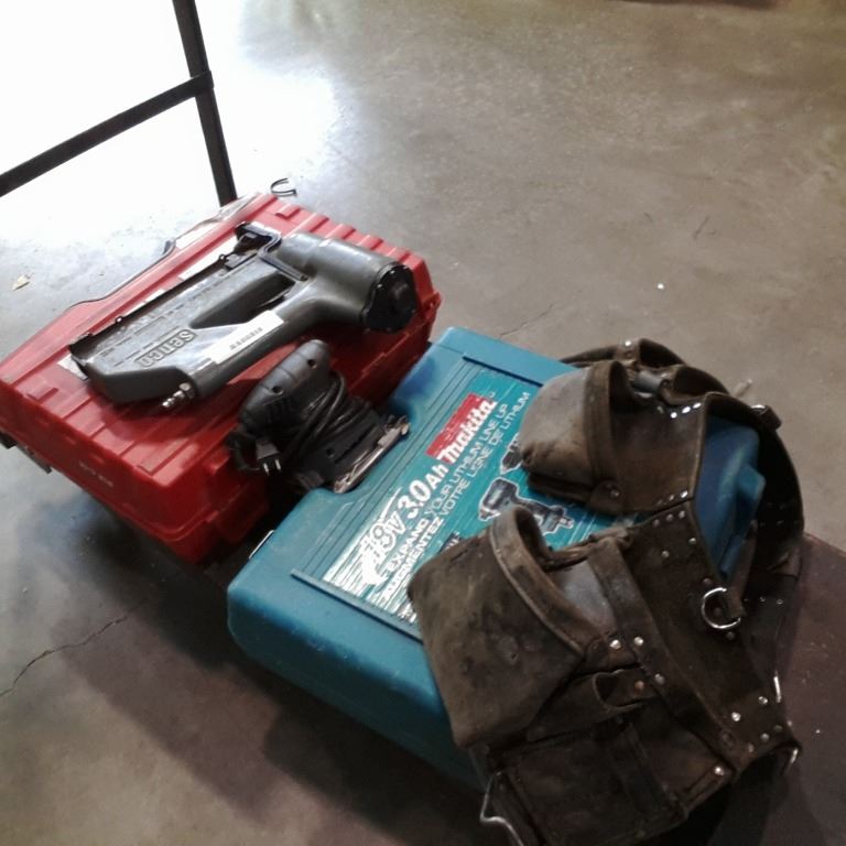 2 TOOL CASES, SENCO NAILER, TOOLBELT AND SANDER