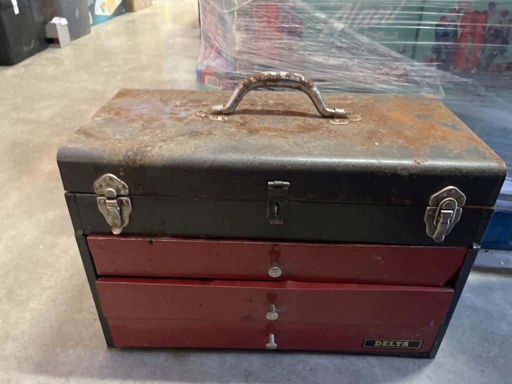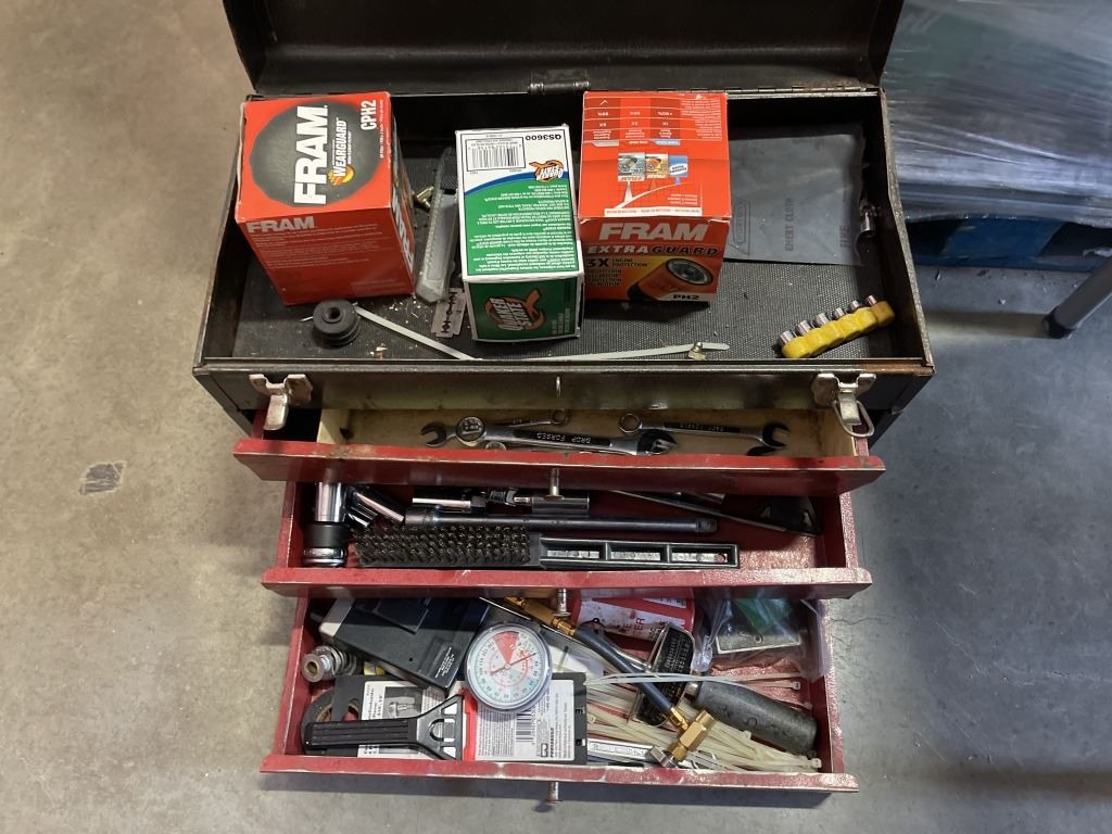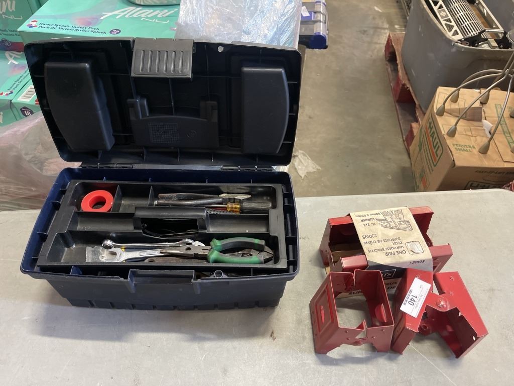 2 TOOLBOXES WITH CONTENTS AND SAW HORSE BRACKETS