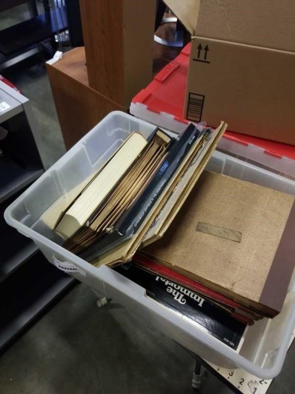 2 TOTES AND BOX OF RECORDS