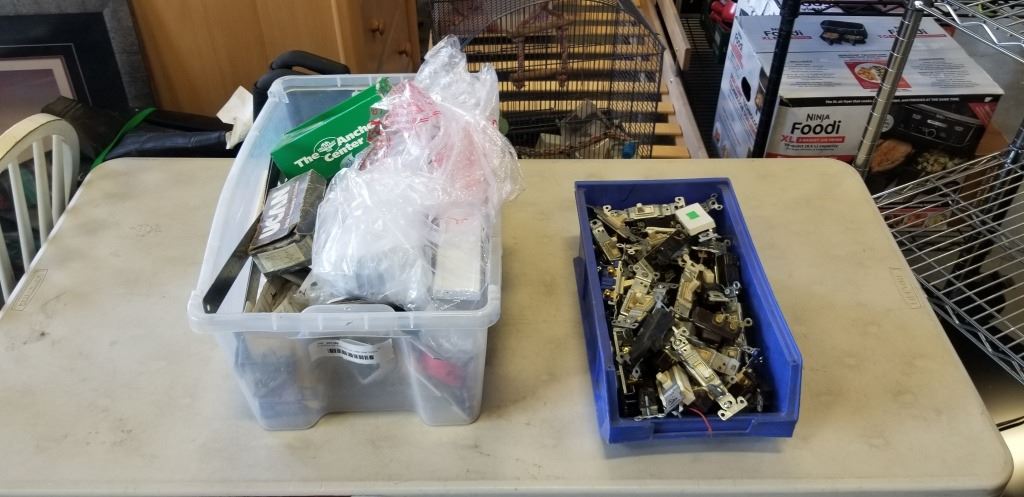 2 TOTES OF ELECTRICAL AND SWITCHES