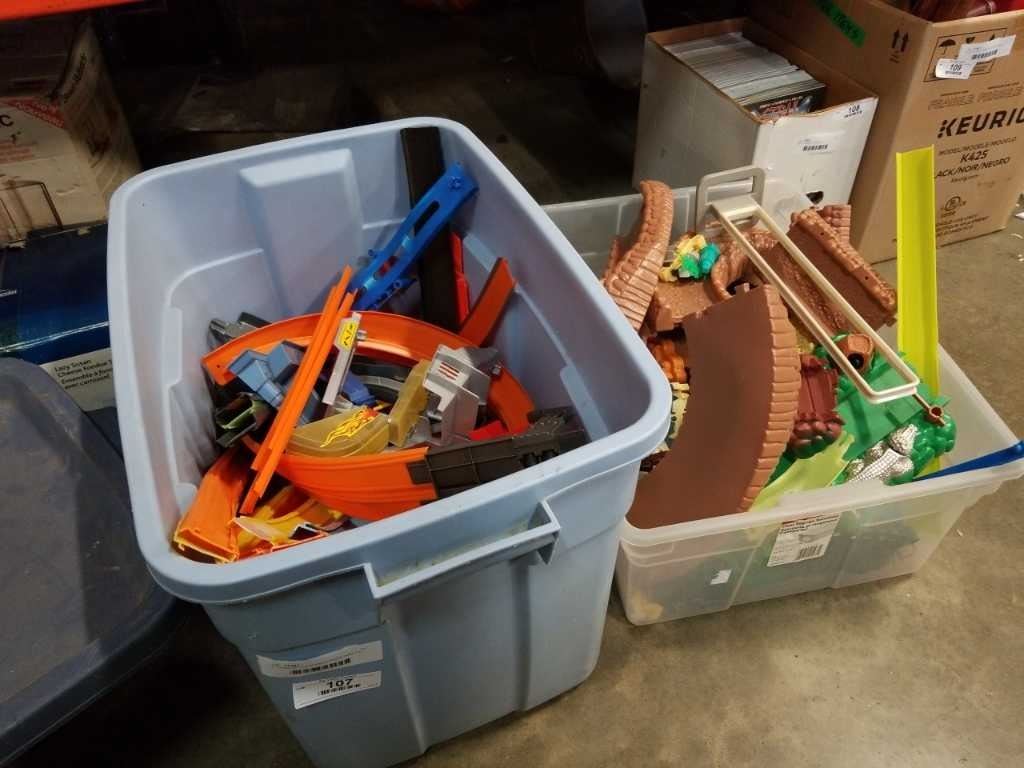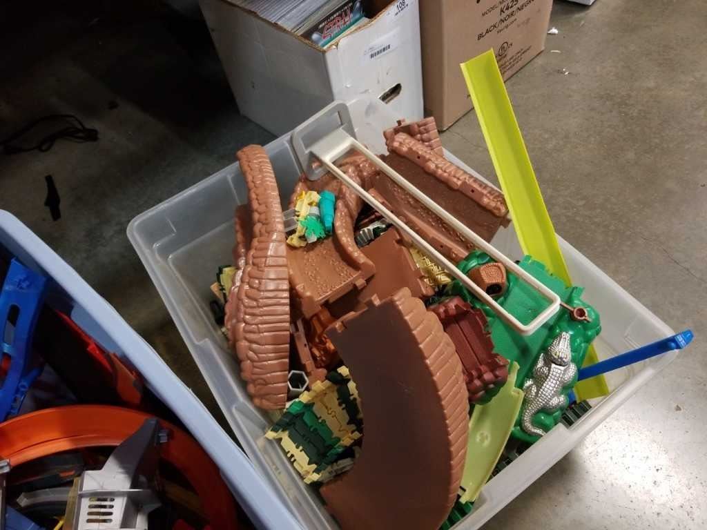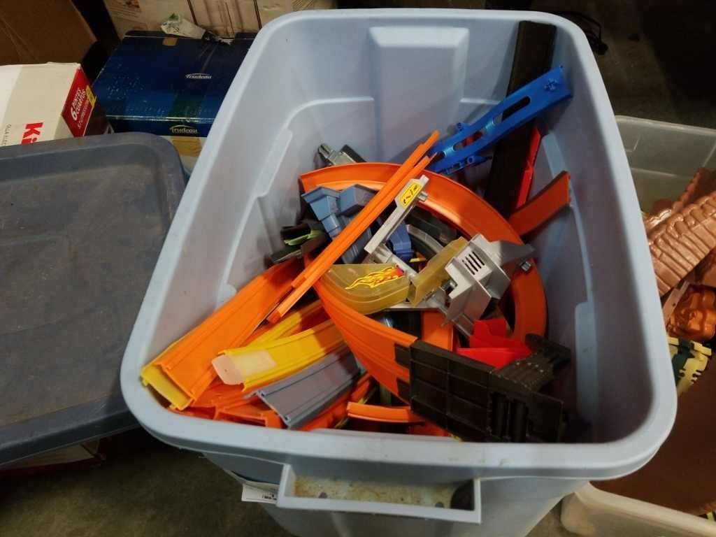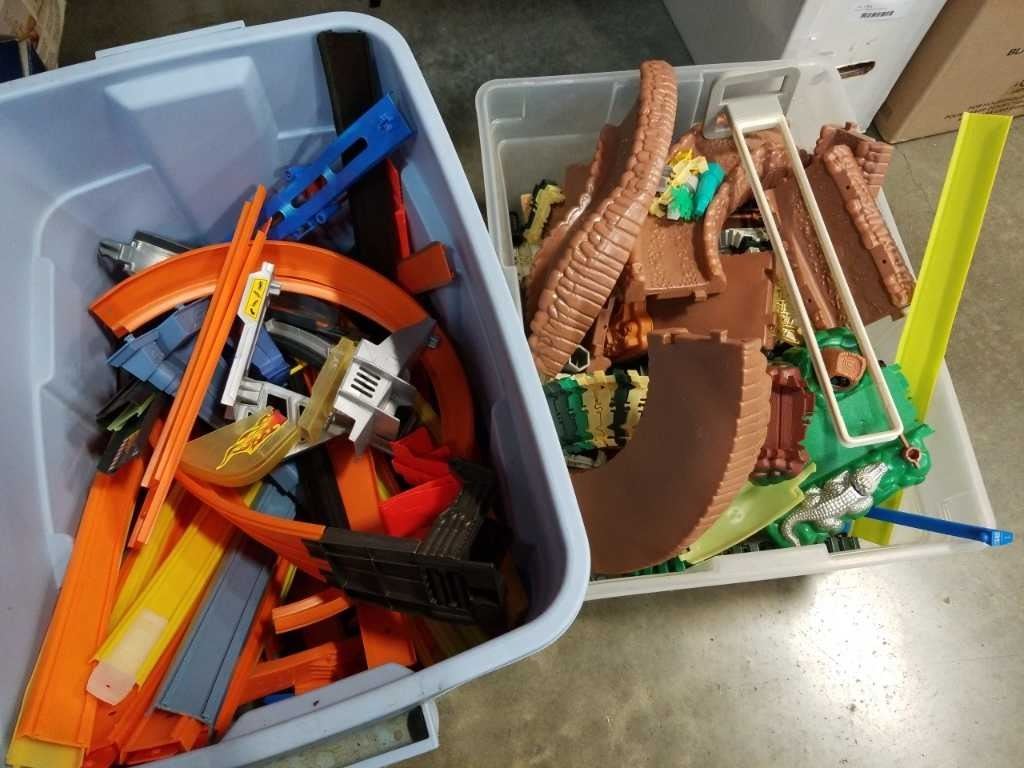 2 TOTES OF HOTWHEELS TRACK AND TOY CAR PLAY SET