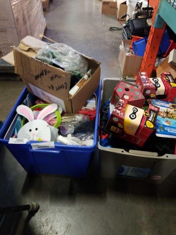 2 TOTES OF NEW DECORATIONS, CRAFTS AND MORE