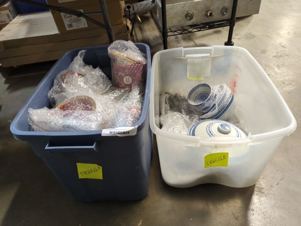 2 TOTES OF VARIOUS CHINA: MYOTTS, NORITAKE, JOHNSON BROS AND MORE
