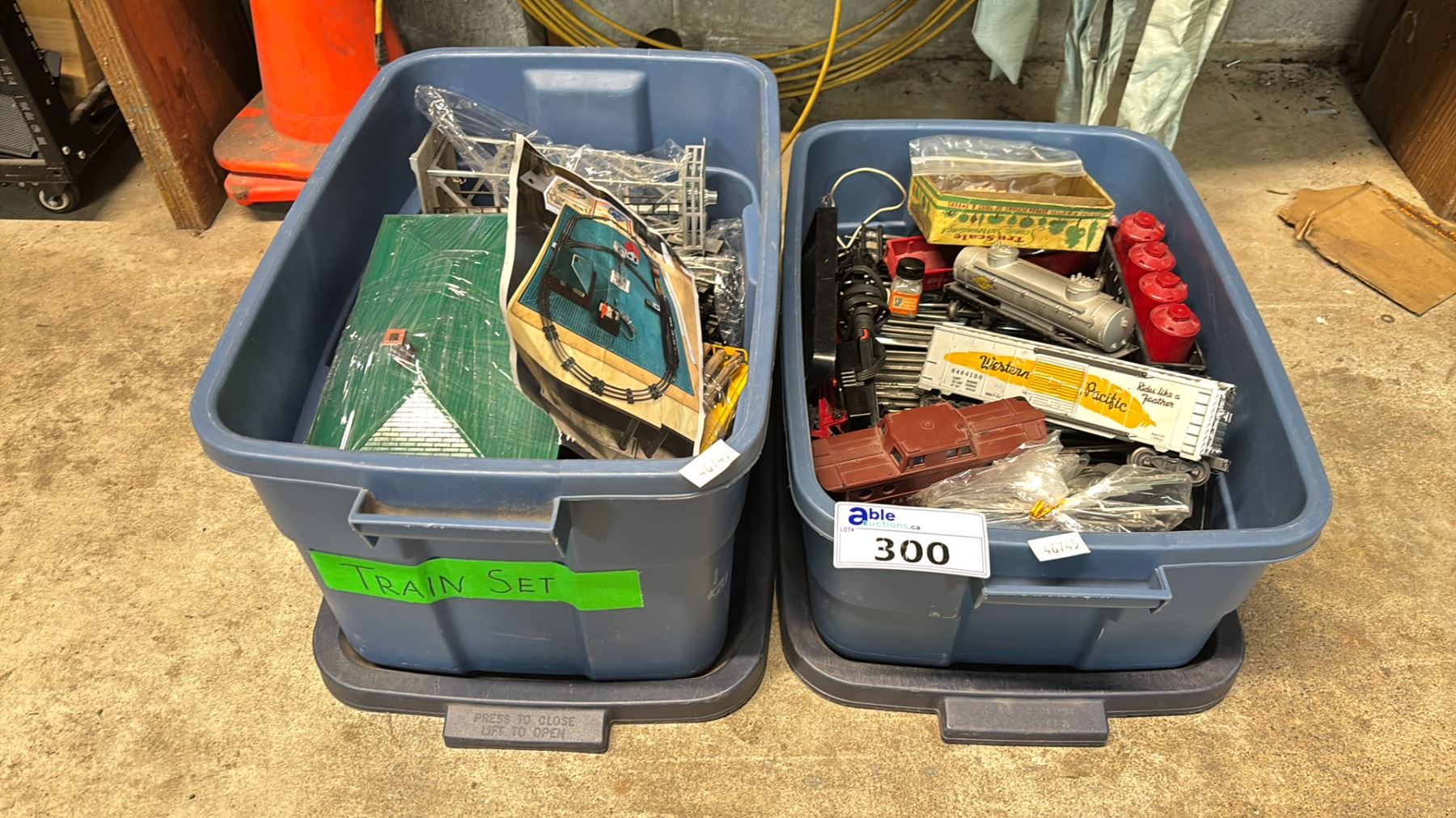 2 TOTES OF VINTAGE TRAIN SETS