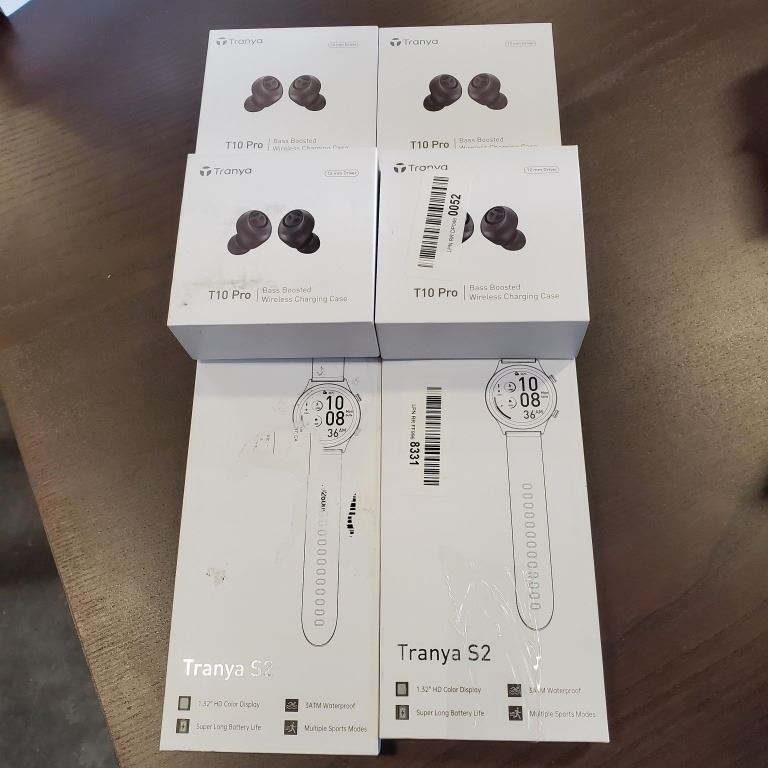 2 TRANYA S2 SMART WATCHES AND 4 PAIRS OF TRANYA PRO TRULY WIRELESS EARBUDS