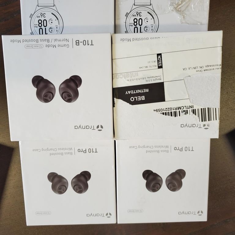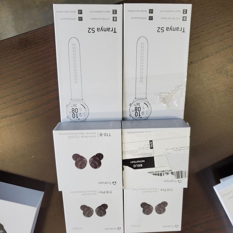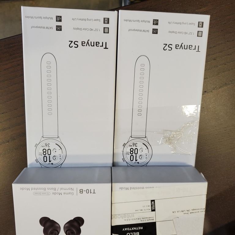 2 TRANYA S2 SMART WATCHES AND 4 PAIRS OF TRANYA TRULY WIRELESS EARBUDS T10B AND PRO