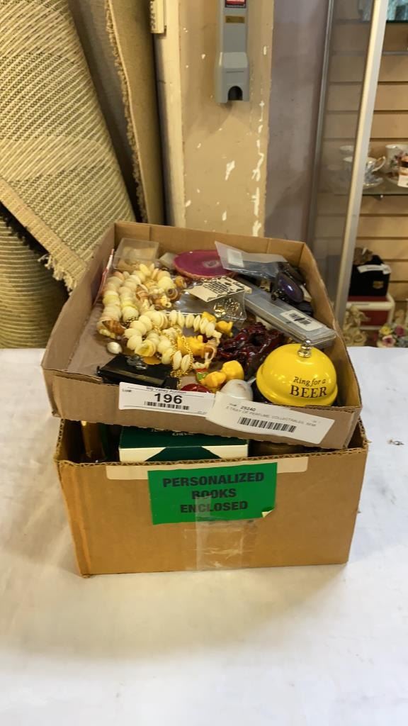 2 TRAY OF PERFUME, COLLECTABLES, SEMI PRECIOUS STONE
