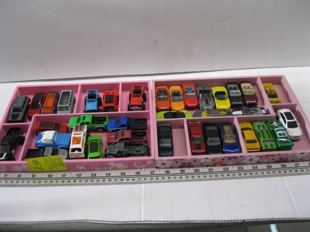 2 TRAYS OF ASST. HOT WHEELS CARS, ETC.