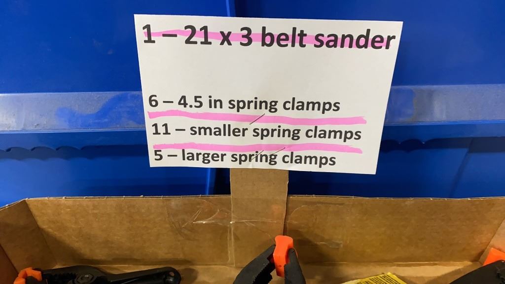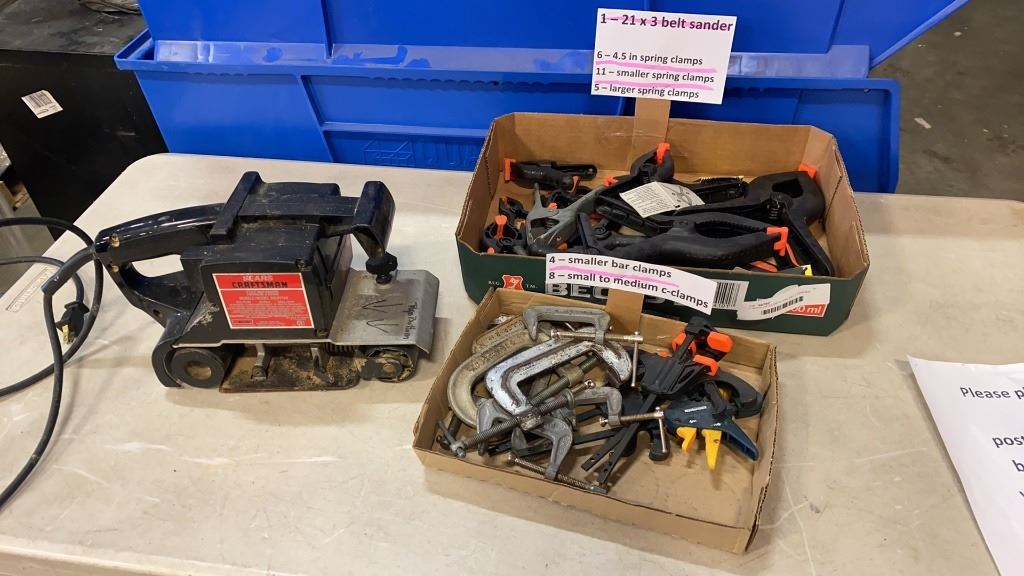 2 TRAYS OF CLAMPS AND BELT SANDER