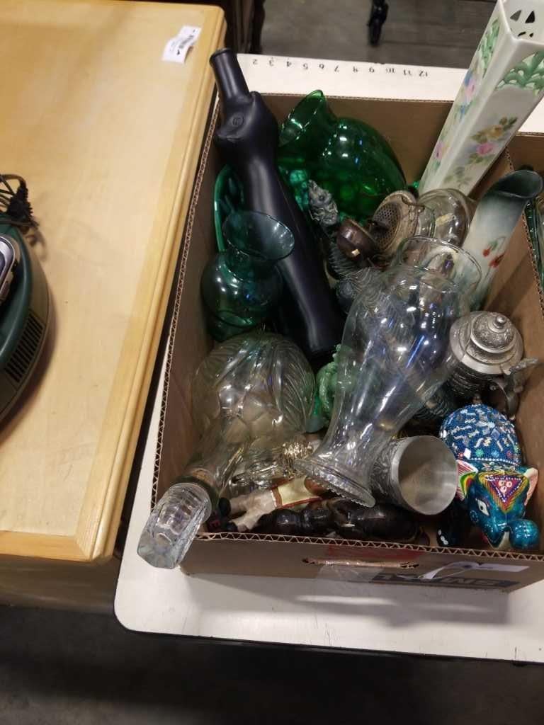 2 TRAYS OF COLLECTIBLES, CASES, CRYSTAL WAND, METAL DRAGON FIGURE
