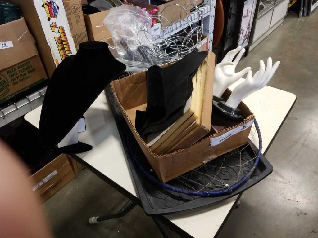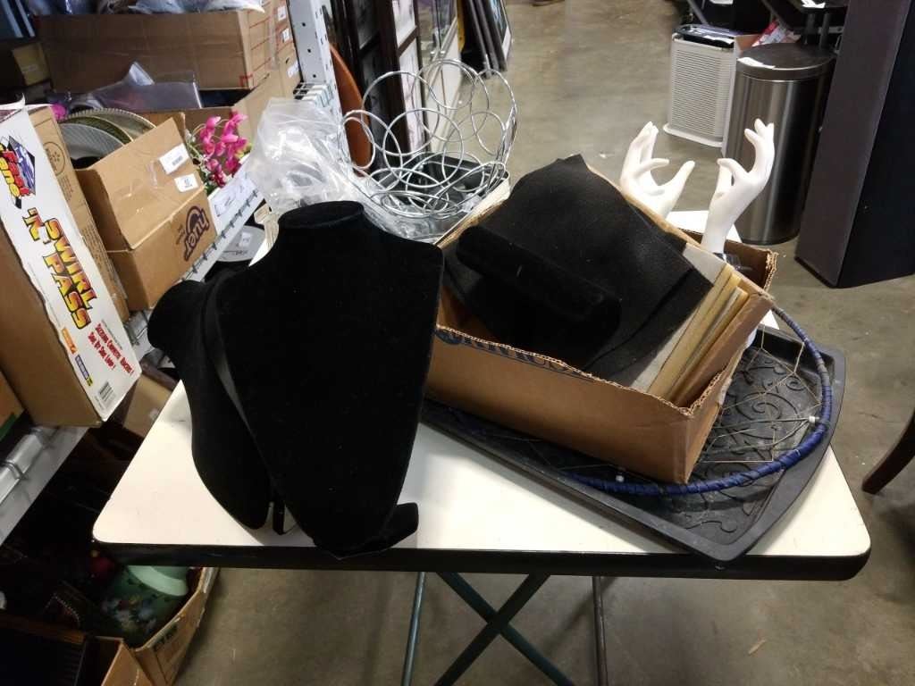 2 TRAYS OF JEWELRY DISPLAY STANDS, DREAM CATCHER, ETC