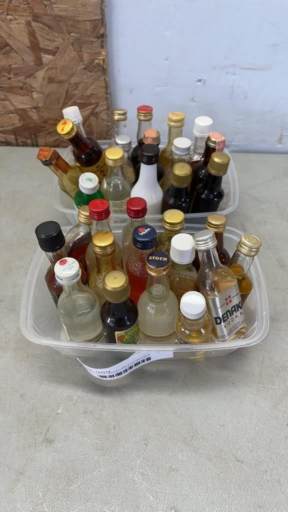 2 TRAYS OF MINIATURE COLLECTIBLE LIQUOR BOTTLES APPROX 30 - MOST SEALED