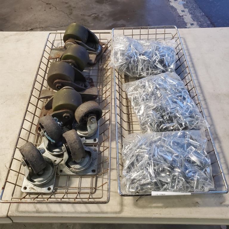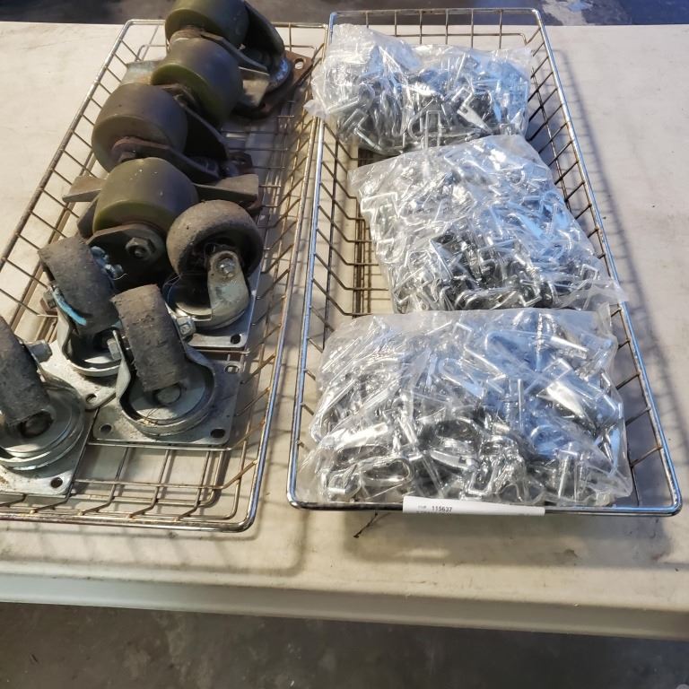 2 TRAYS OF NEW BELT CLIPS AND CASTERS