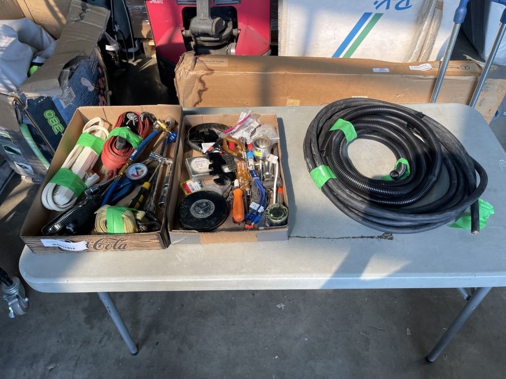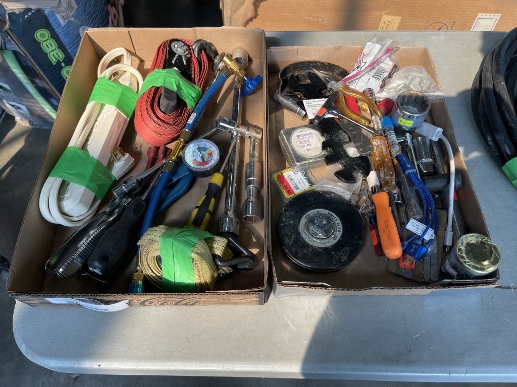 2 TRAYS OF TOOLS, GUAGES, ETC AND ELECTRICAL WIRE