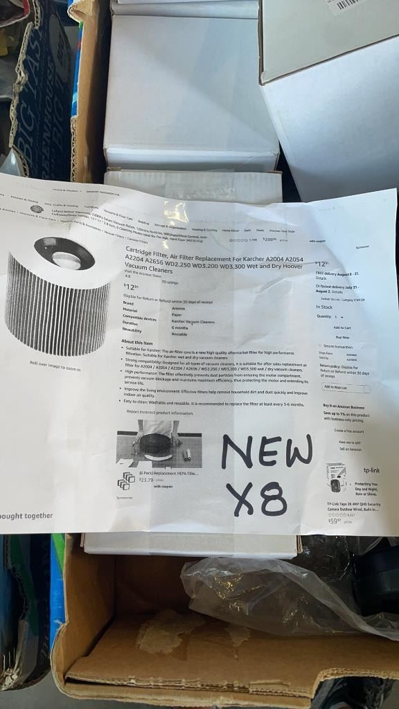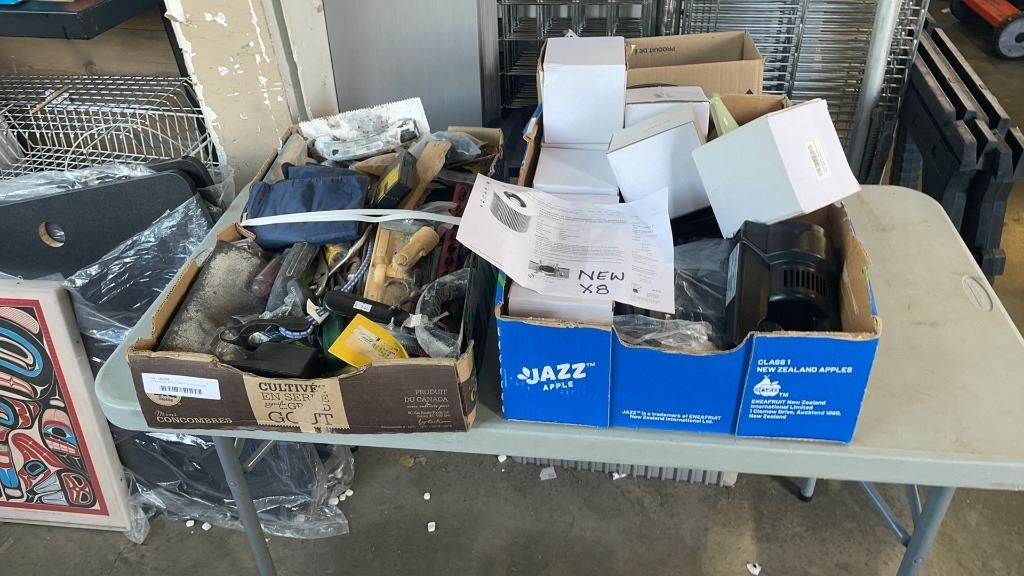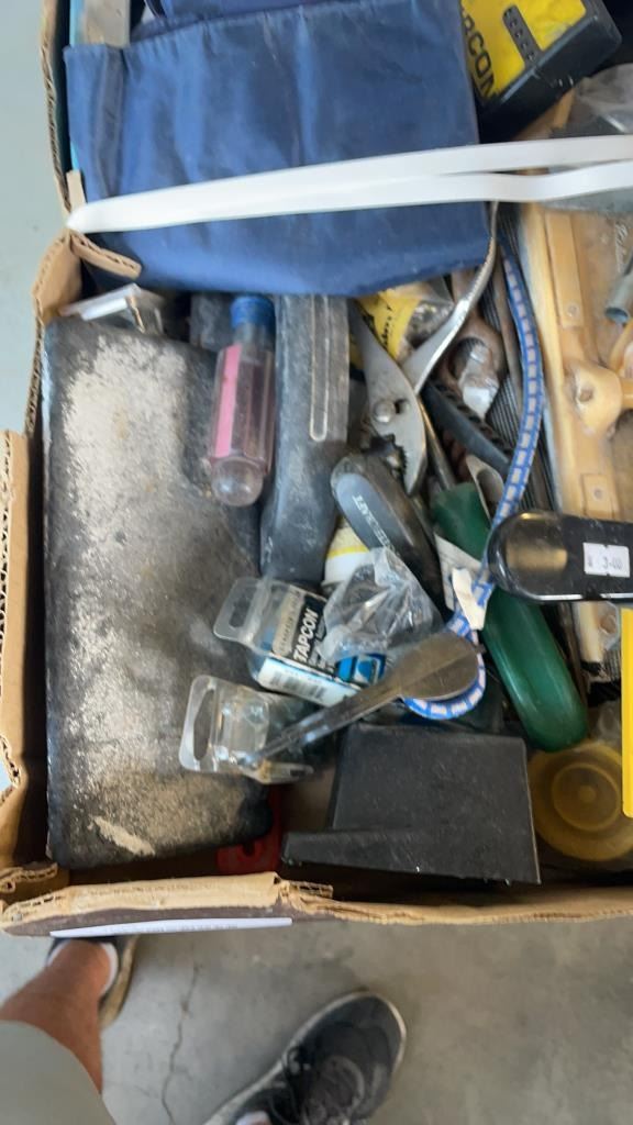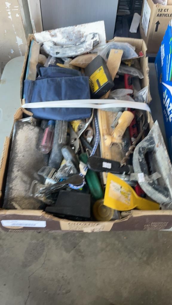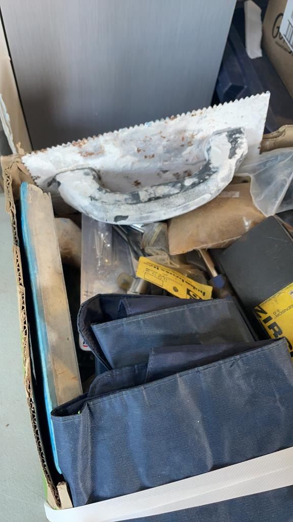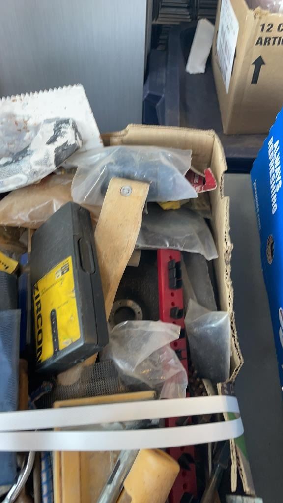 2 TRAYS OF TOOLS, SHOP SUPPLIES AND NEW CARTRIDGE FILTERS