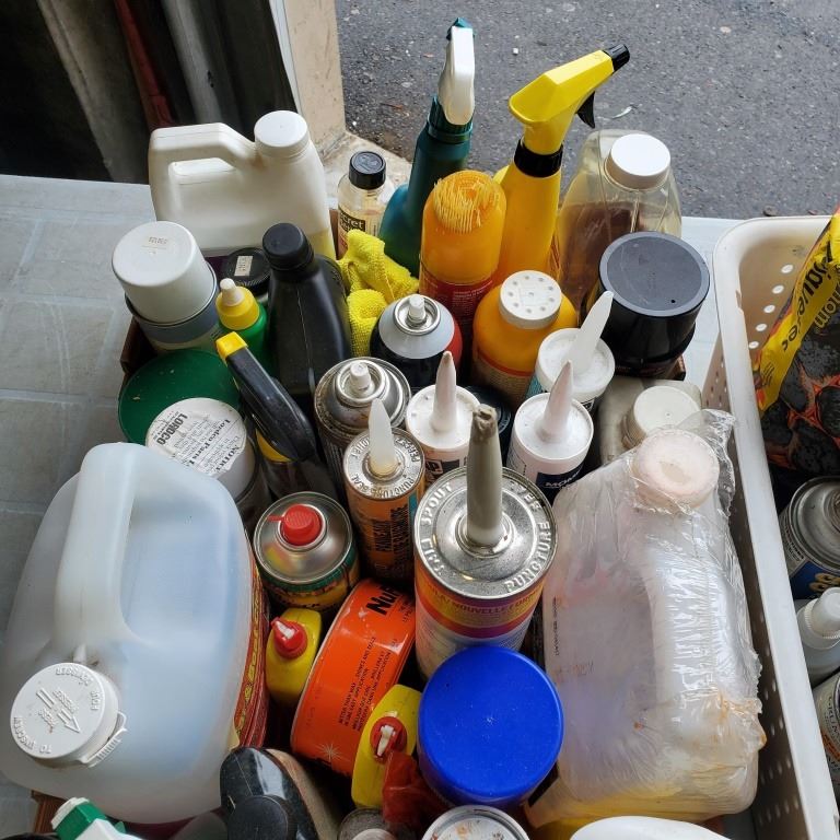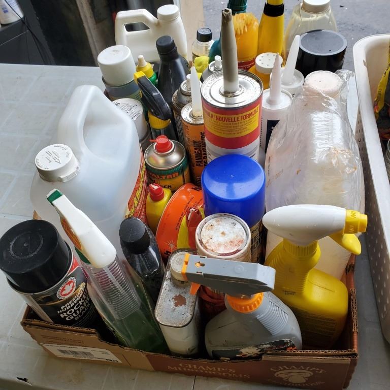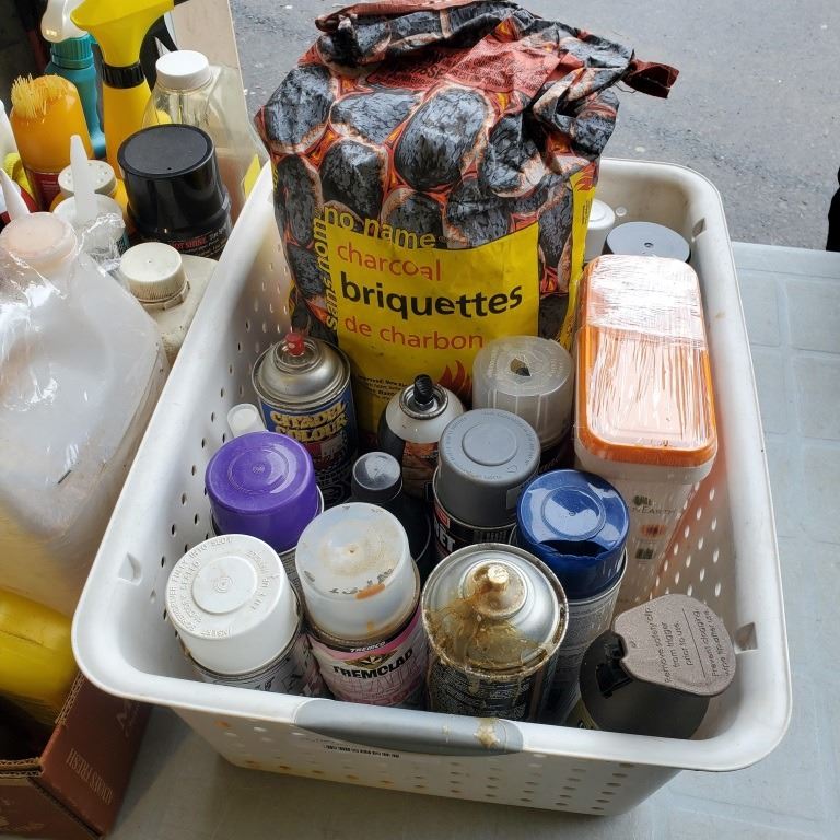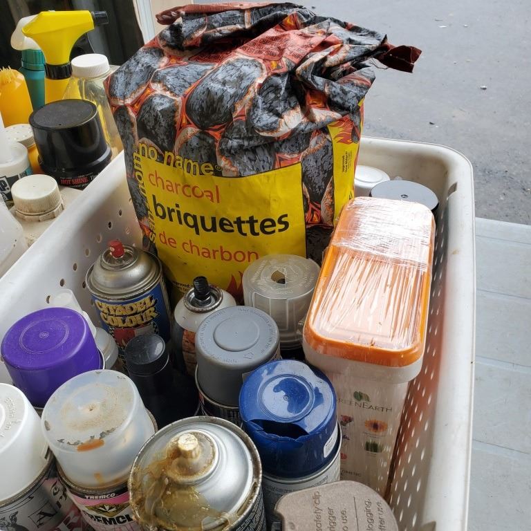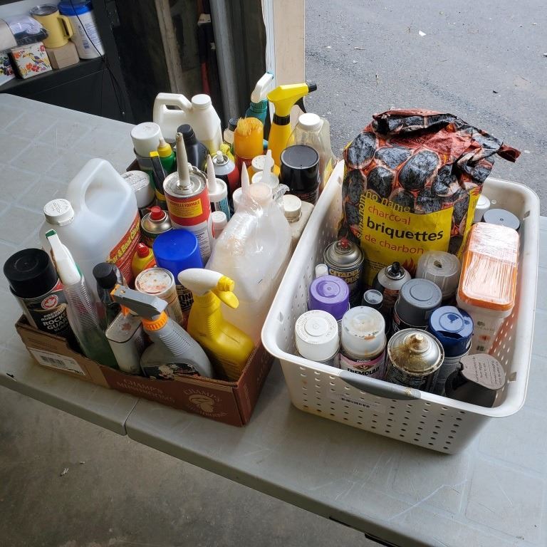 2 TUBS OF SHOP FLUIDS CLEANERS AND CHARCOAL BRIQUETTES