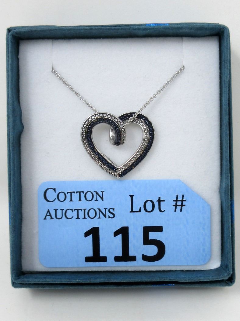 Set with 1 white & 1 blue round cut diamonds. Includes chain. Retail value $210.