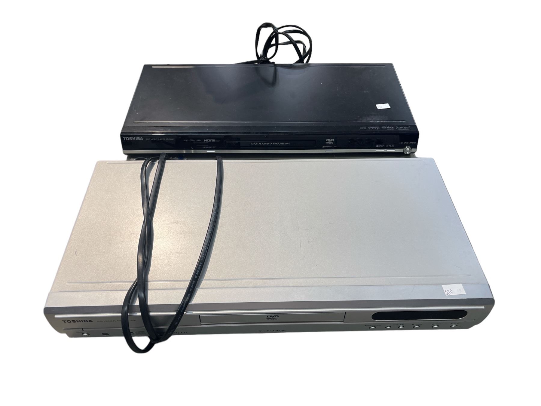 2 Toshiba DVD Players, With 2 Totes Full Of DVDs