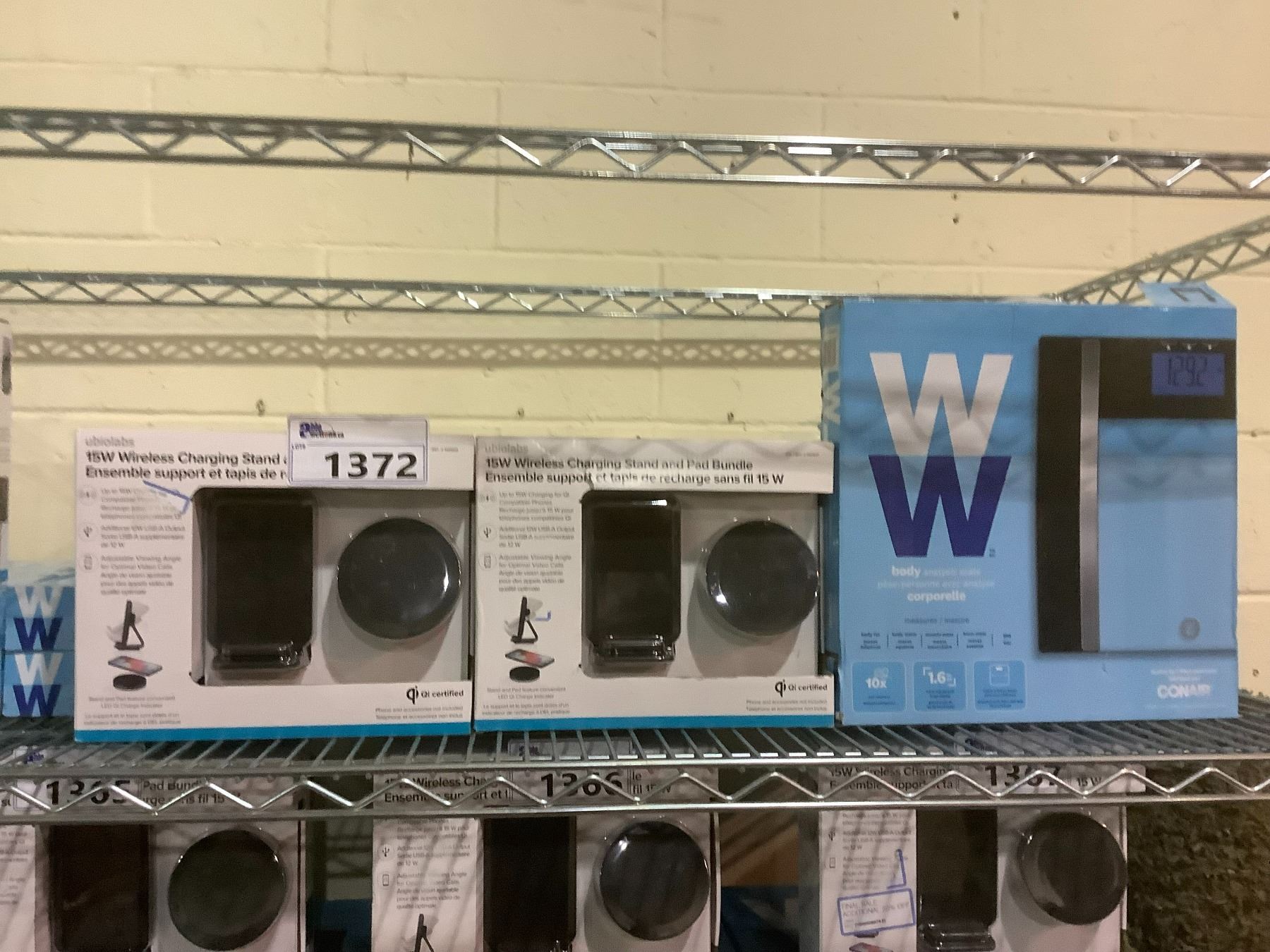 2 UBIOLABS 15W WIRELESS CHARGING STAND AND PAD BUNDLE, AND CONAIR SCALE