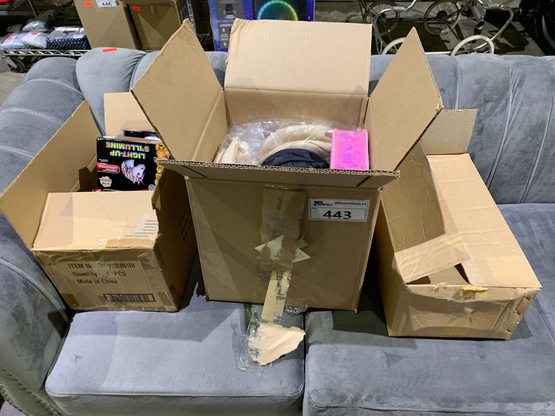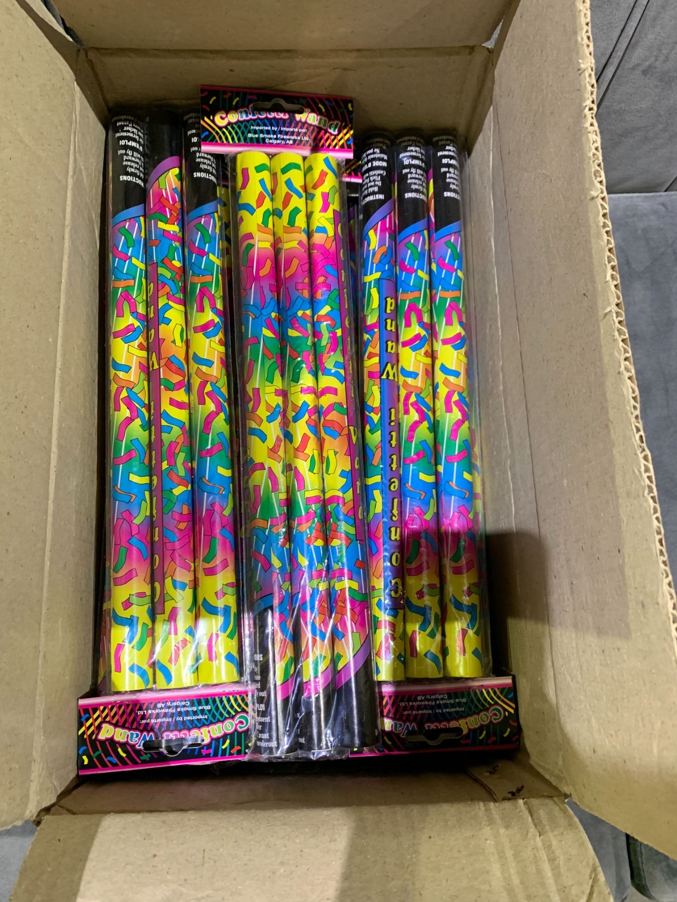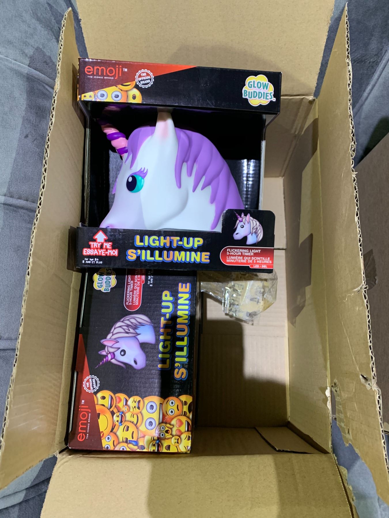 2 UNICORN GLOW LIGHTS, BOX OF CHILDREN'S BACKPACKS AND BOX OF CONFETTI WANDS