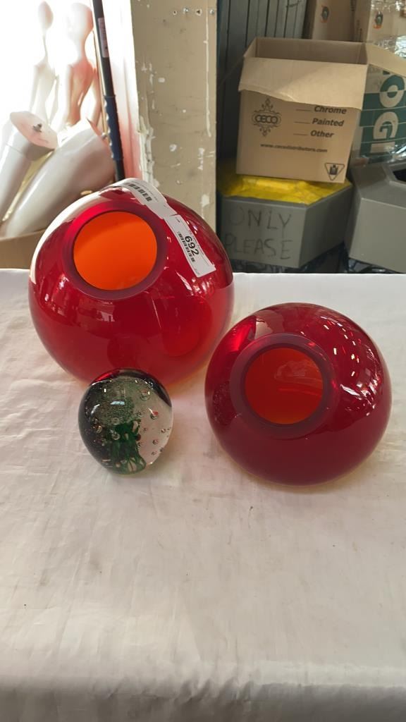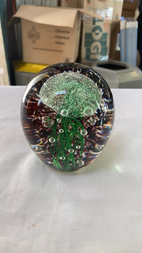 2 UNIQUE ART GLASS VASES AND ART GLASS JELLYFISH PAPERWEIGHT