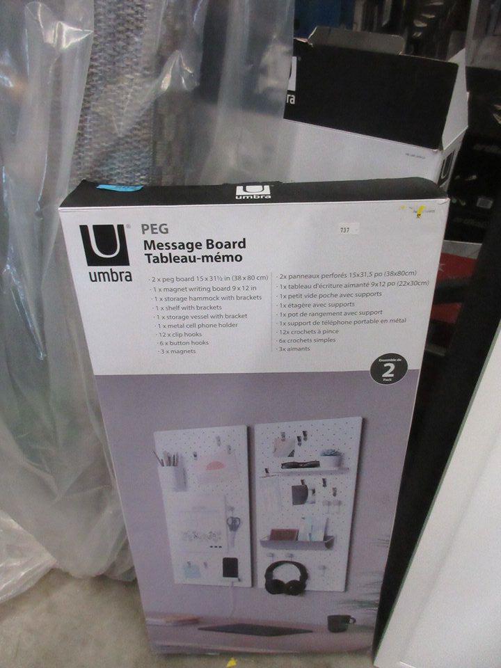 Each set contains two 15" x 31" peg boards with accessories. Customer returns.