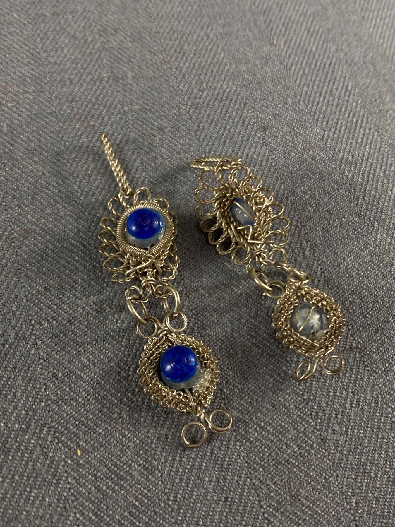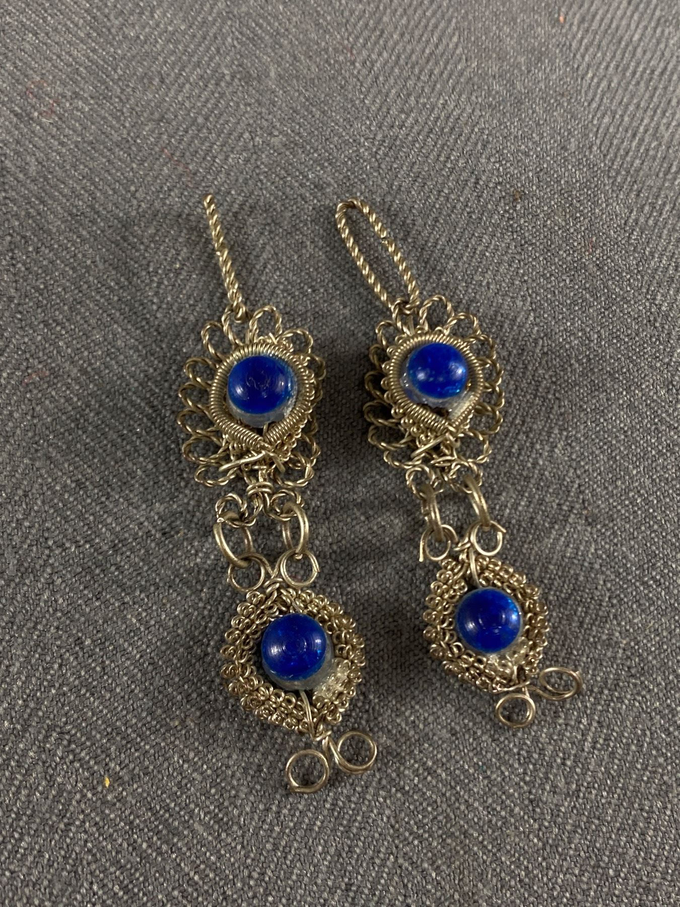 2 Unusual Vintage Silver Filigree + Enamel Pendants