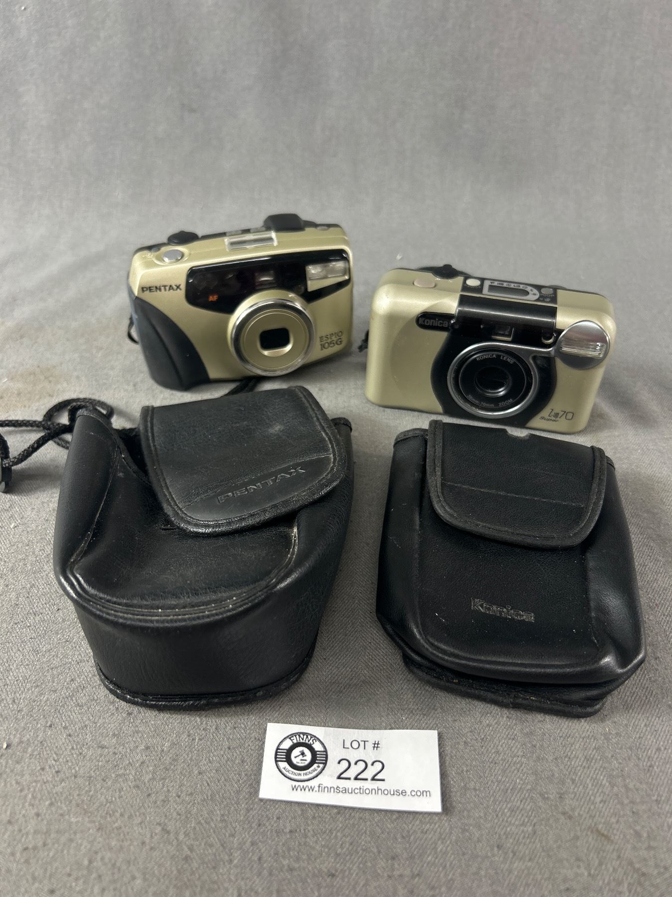 2 Used Cameras w/ Pouches - Pentax ESPIO 105G & Konica Z-up 70