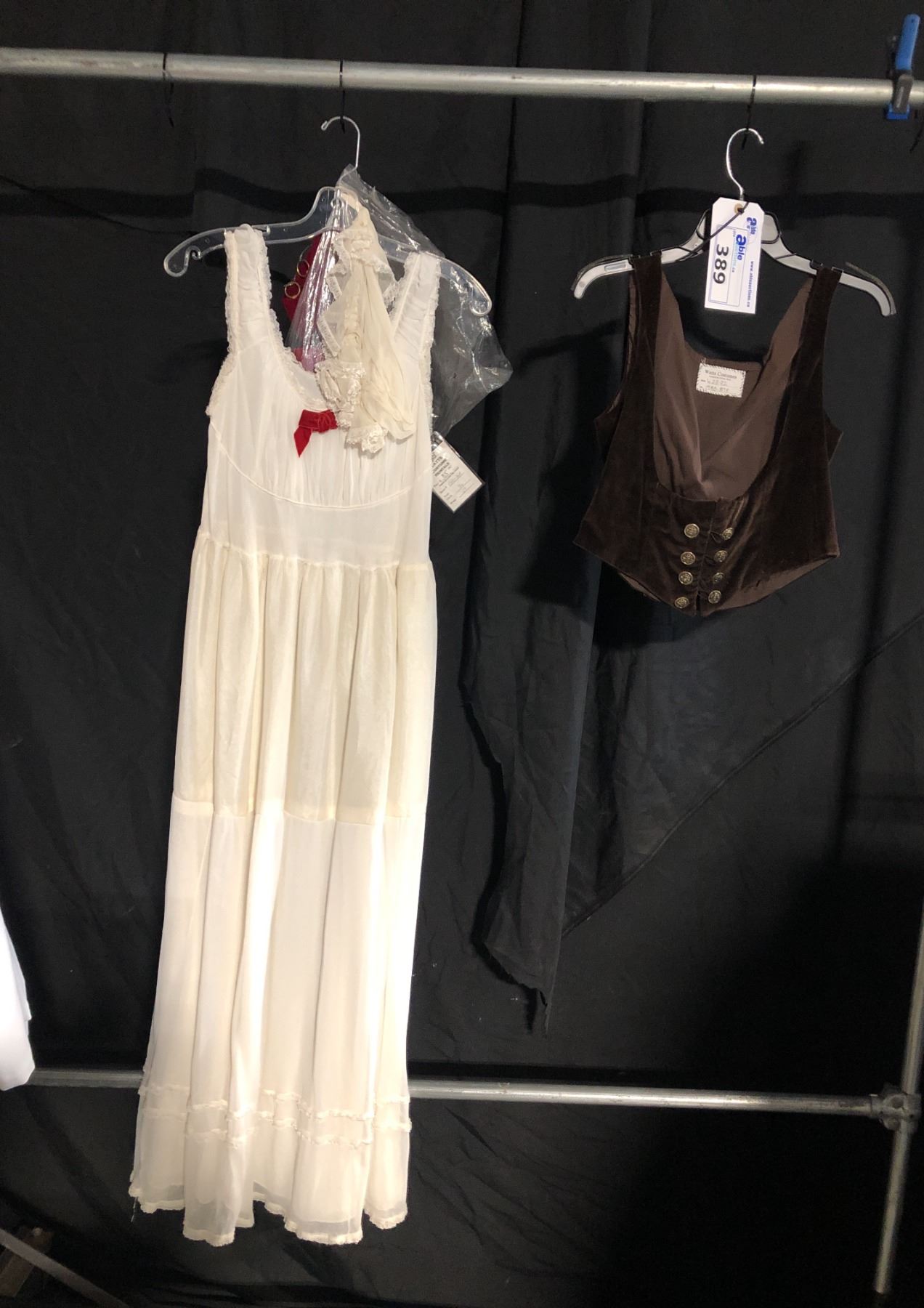 2 VINTAGE 1920'S COSTUMES, 1 WHITE DRESS, 1 BROWN VEST, DAILY RENTAL $90.00