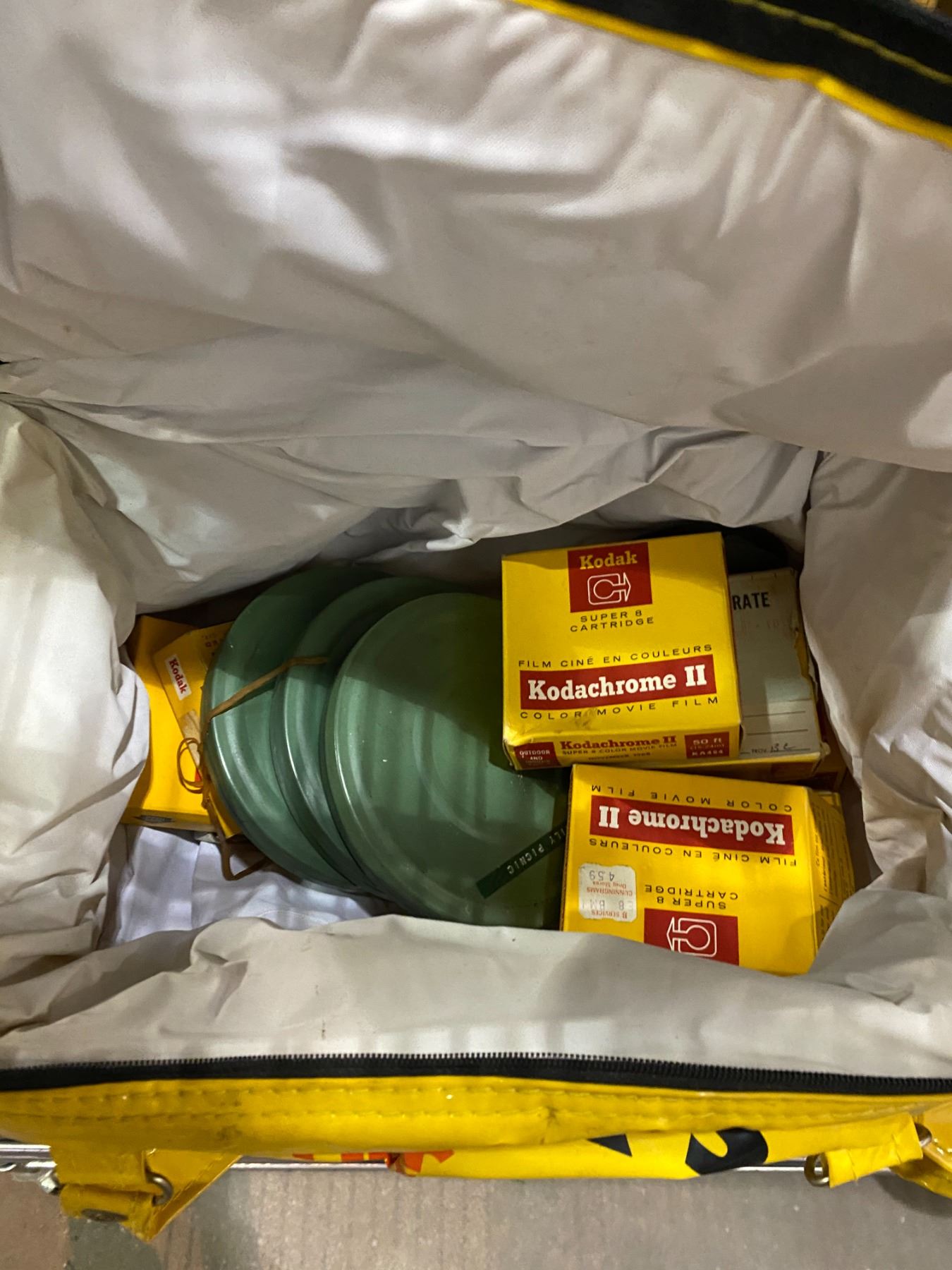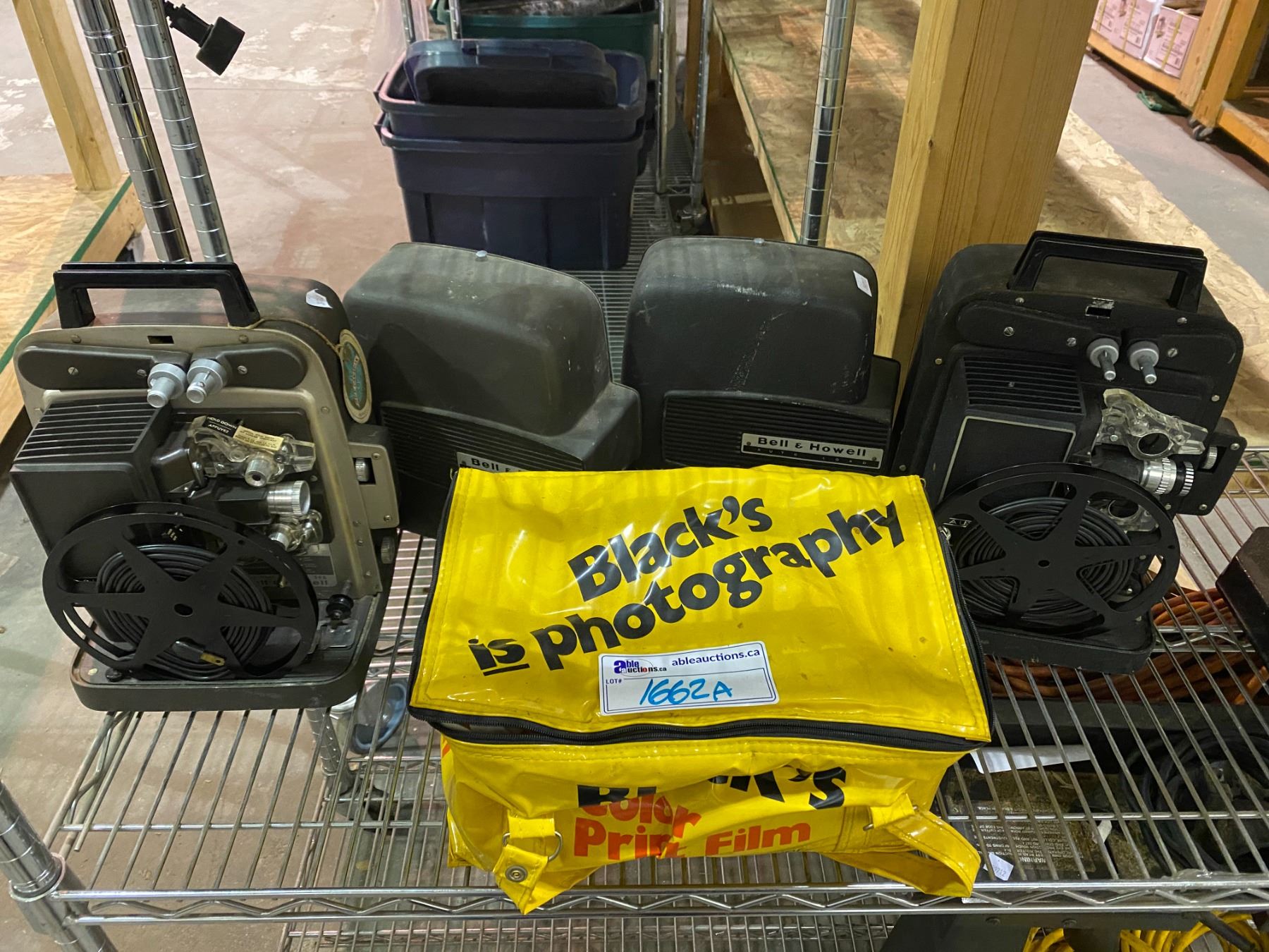 2 VINTAGE BELL & HOWELL PROJECTORS, BLACKS PHOTOGRAPHY BAG AND VINTAGE REELS