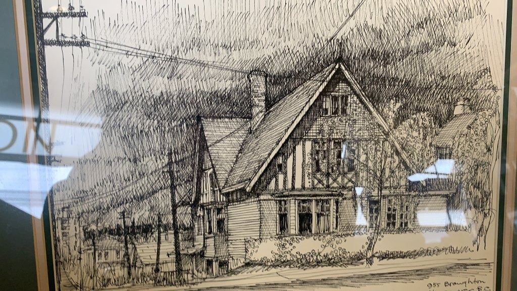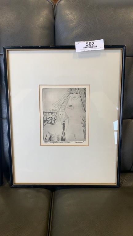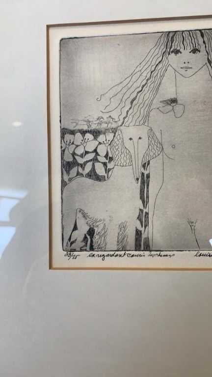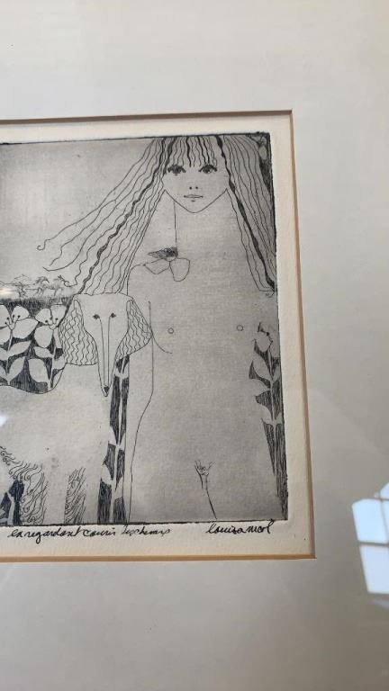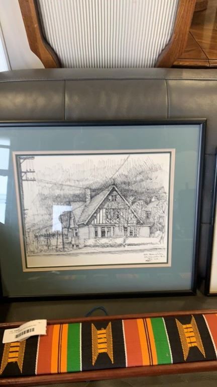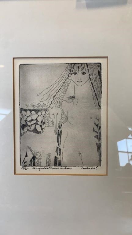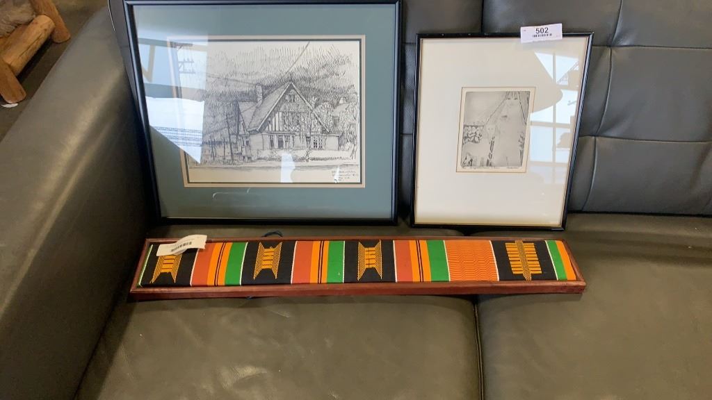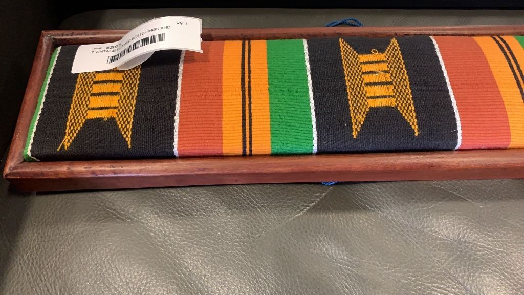 2 VINTAGE FRAMED SKETCHINGS AND WALL HANGING