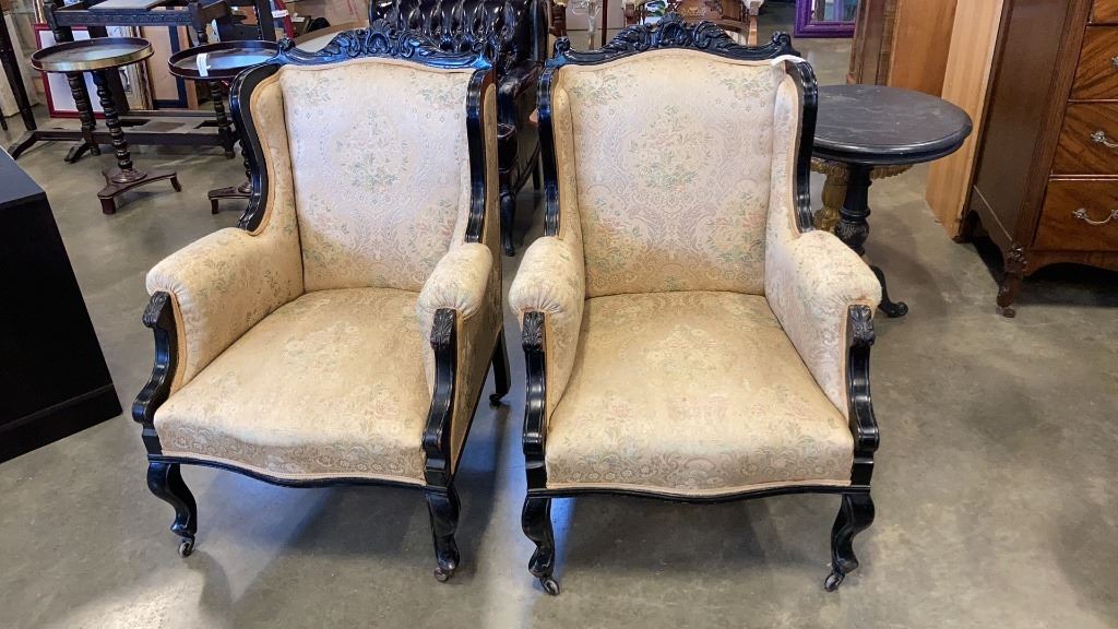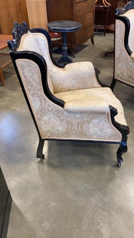 2 VINTAGE WOOD FRAMED ARM CHAIRS
