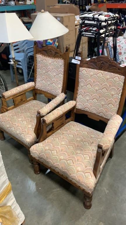 2 VINTAGE WOOD FRAMED ARMCHAIRS