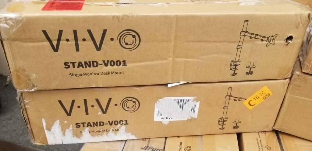 2 VIVO DUAL DESK MOUNTS, AND 2 VIVO SINGLE DESK MOUNTS