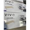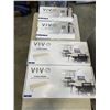 2 VIVO FLIP DOWN CEILING TV AND MONITOR MOUNTS AND 2 LIGHT WOOD MONITOR /TV RISERS