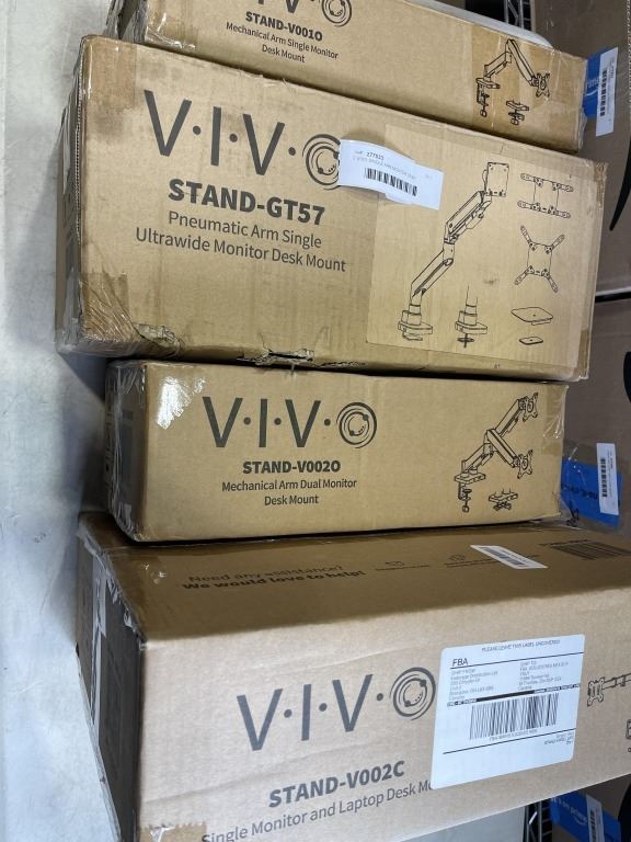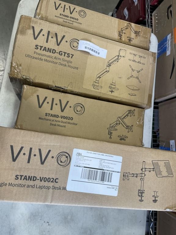 2 VIVO SINGLE ARM MONITOR DESK MOUNTS, SINGLE MONITOR AND LAPTOP DEKS MOUNT AND MECHANICAL DUAL ARM MONITOR DESK MOUNT