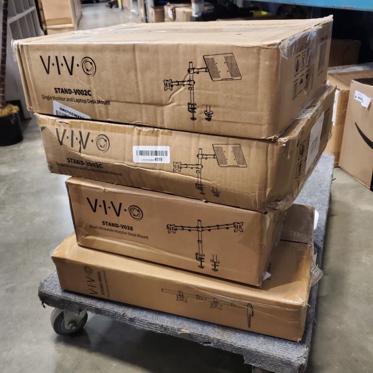 2 VIVO SINGLE MONITOR AND LAPTOP DESK MOUNTS AND 2 VIVO DOUBLE MONITOR MOUNTS
