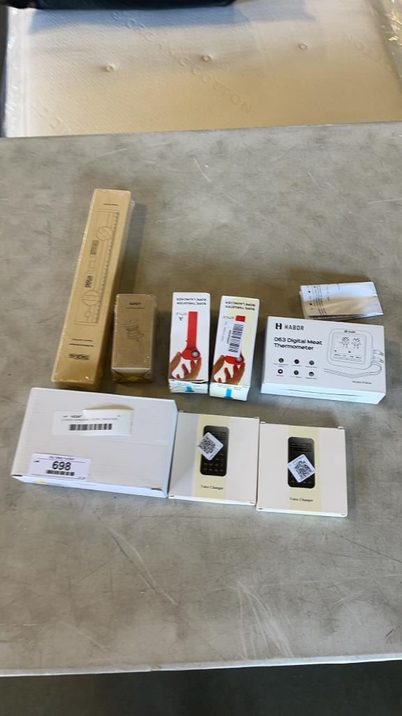 2 VOICE CHANGERS, 2 ROPE THRUSTERS, DIGITAL THERMOMETER, MAGNETIC RULER AND WIRELESS SMARTPHONE CHARGE CLOCK