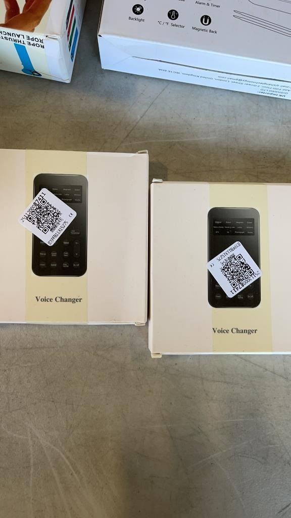 2 VOICE CHANGERS, 2 ROPE THRUSTERS, DIGITAL THERMOMETER, MAGNETIC RULER AND WIRELESS SMARTPHONE CHAR