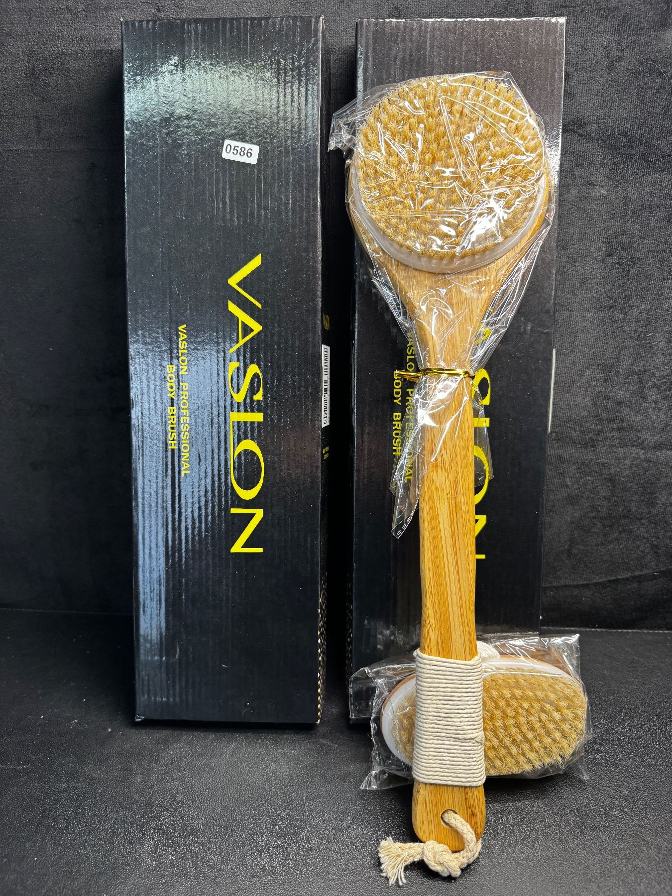 Each box includes 1 long handle body brush and 1 body scrubber that attaches on your hand.