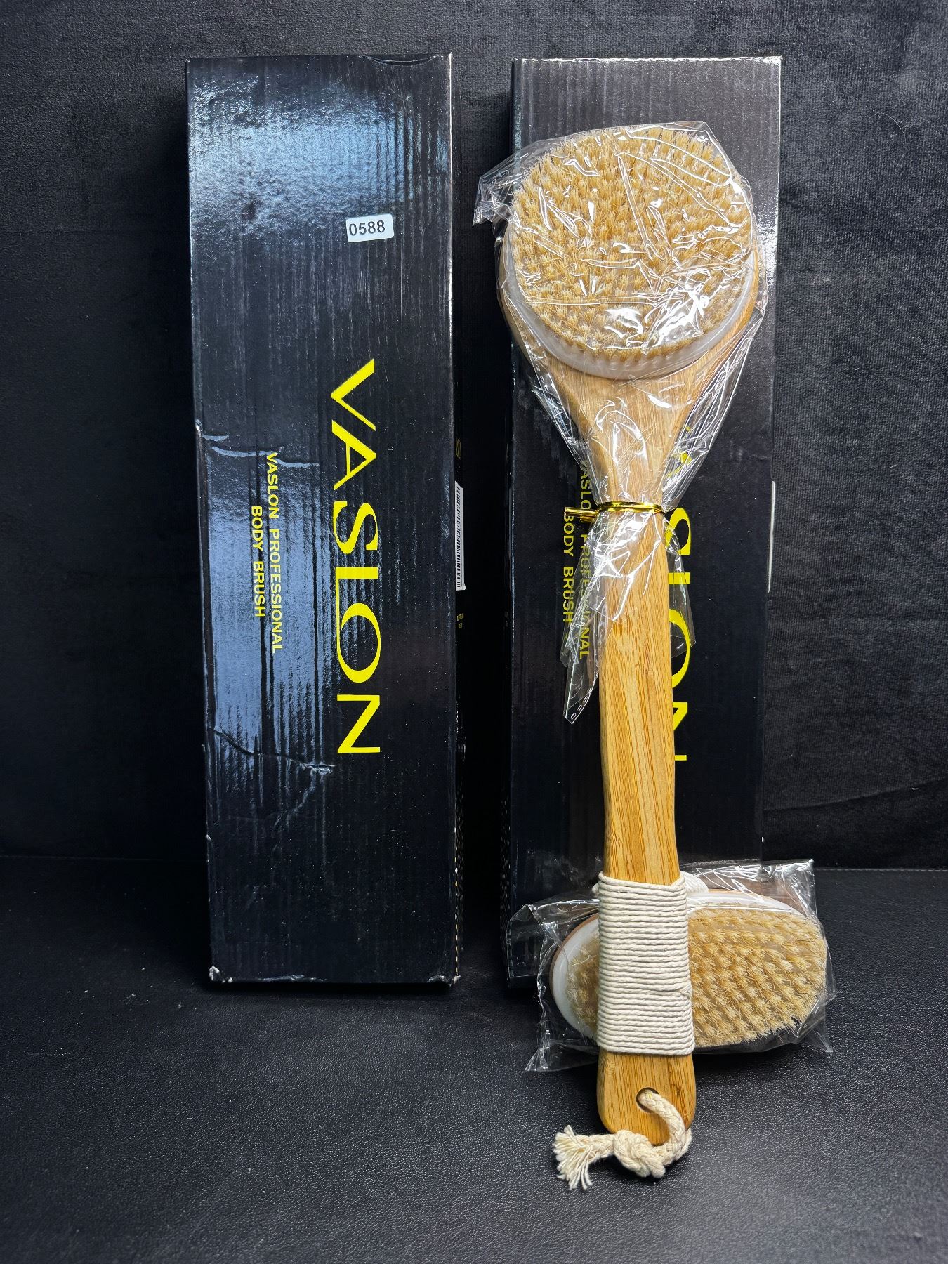 Each box includes 1 long handle body brush and 1 body scrubber that attaches on your hand.
