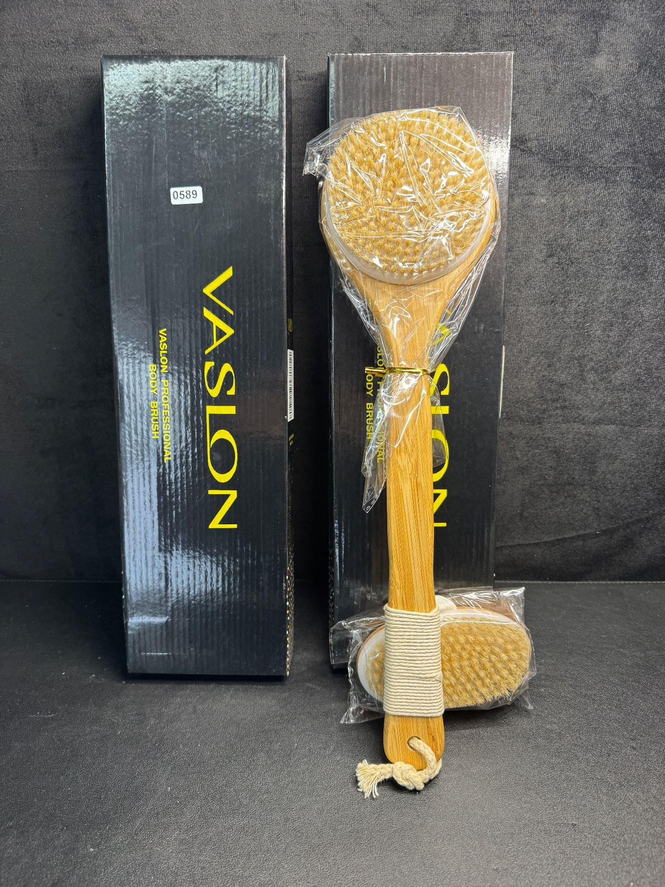 Each box includes 1 long handle body brush and 1 body scrubber that attaches on your hand.