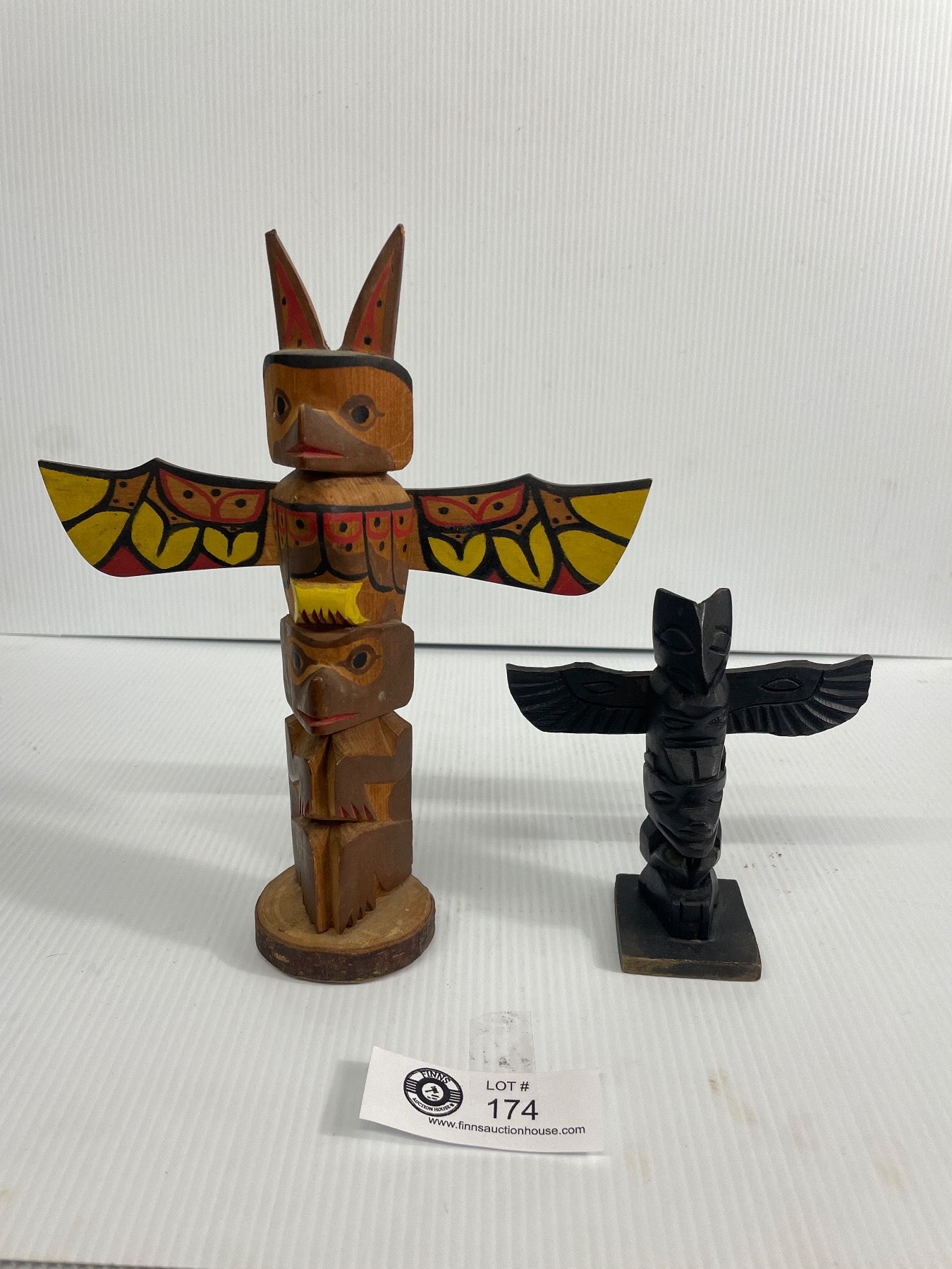2 Vintage 1950's Hand Carved Totems - Signed C.August, Duncan BC & One Unsigned