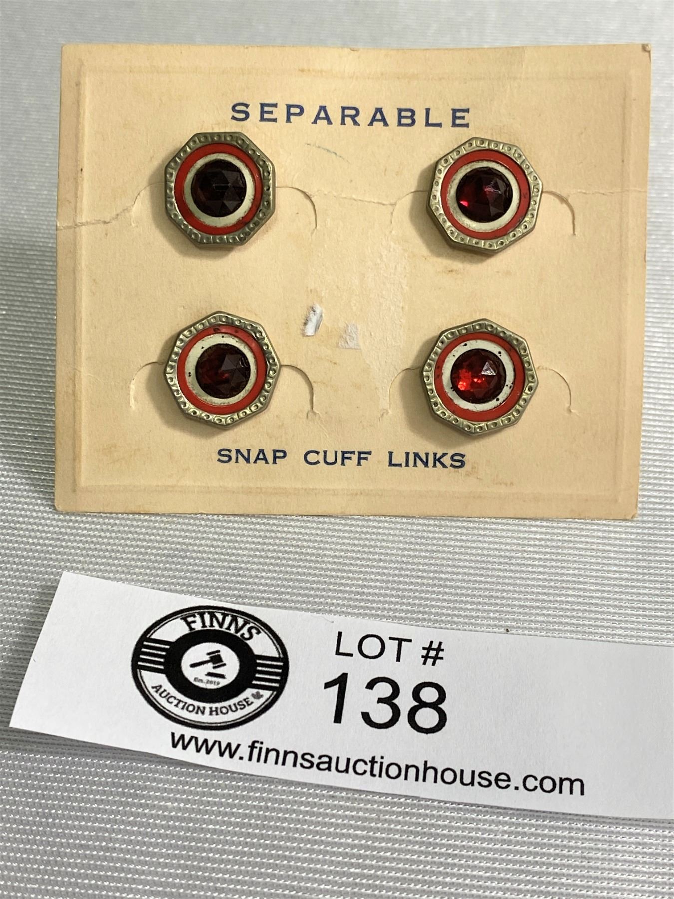 2 Vintage Art Deco Snap Cufflinks Silvertoned with Red Rhinestone Center.