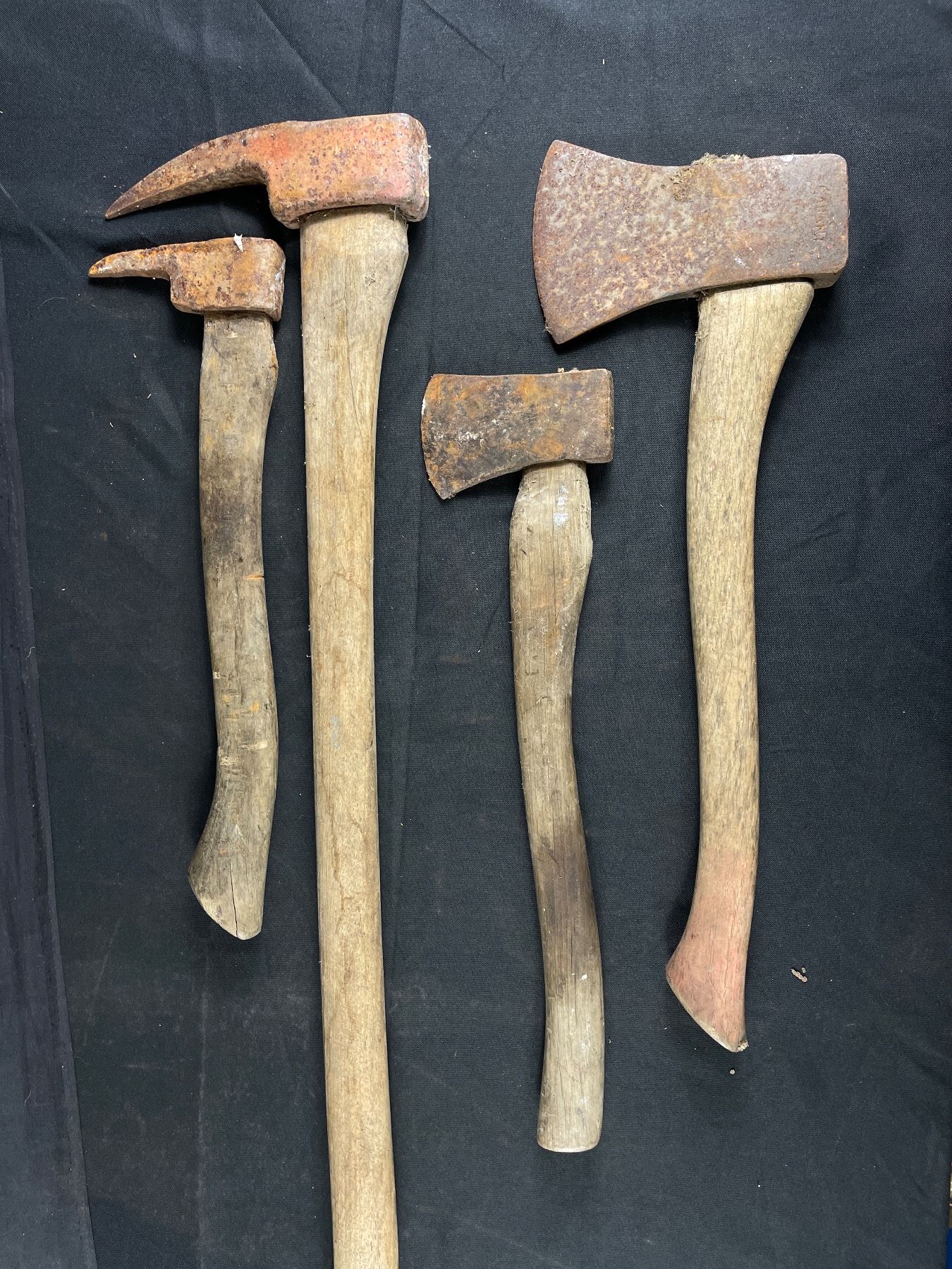 2 Vintage Axes 1 Big and 1 Small Plus 2 Log Driver's Pick 1 Big and 1 Small. NO SHIPPING